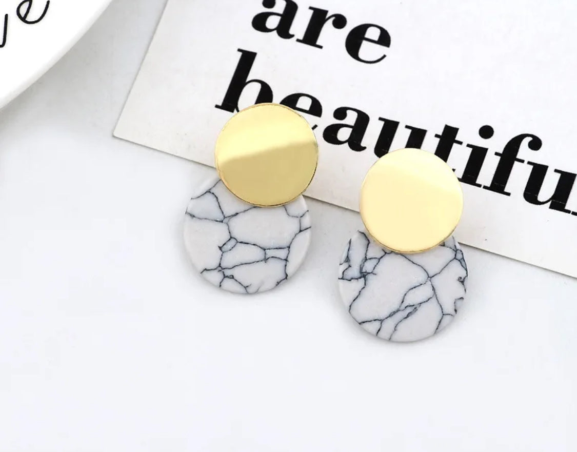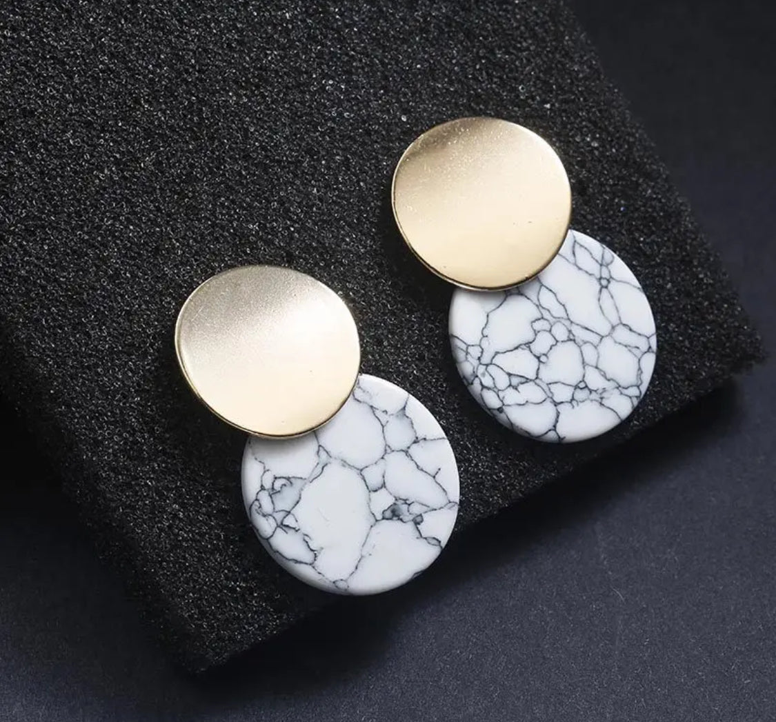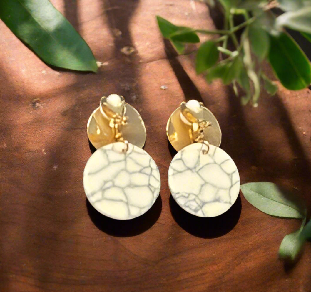 Turn heads with these elegant Clip on 1 1/2" bent gold top dangle white and black earrings. The unique design adds a touch of sophistication to any outfit with its chic gold top and bold contrast of white and black. Perfect for any occasion, these earrings are sure to make a statement!
