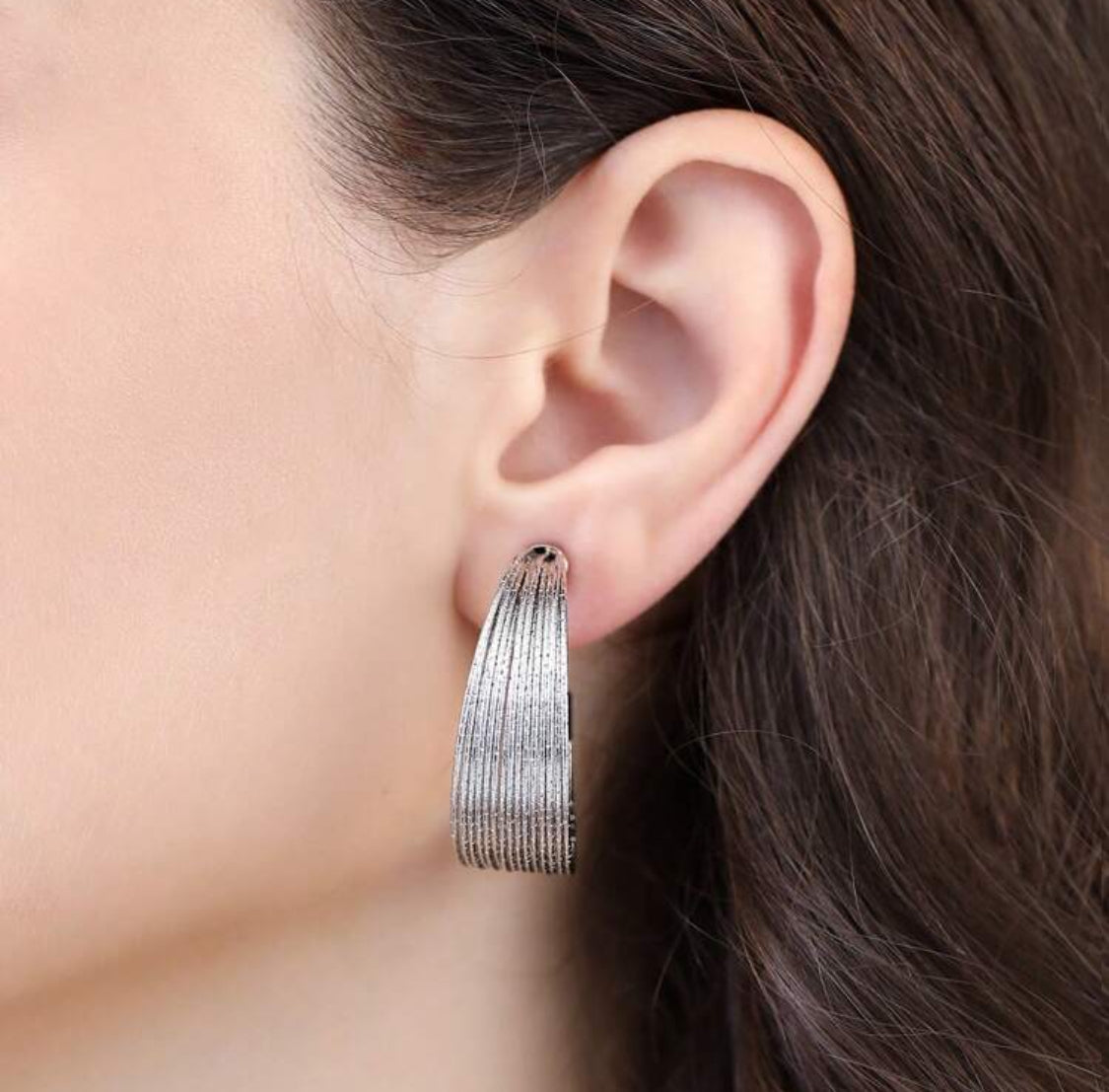 Make a dazzling statement with these 1 1/2" long and 1/2" wide clip-on hoop earrings crafted from sparkling silver wire. Their graduated open-back design adds depth and elegance, catching the light beautifully with every movement. Perfect for those without pierced ears, they provide a secure and comfortable fit while enhancing any look with a touch of glamour. Ideal for elevating both casual and formal outfits effortlessly.