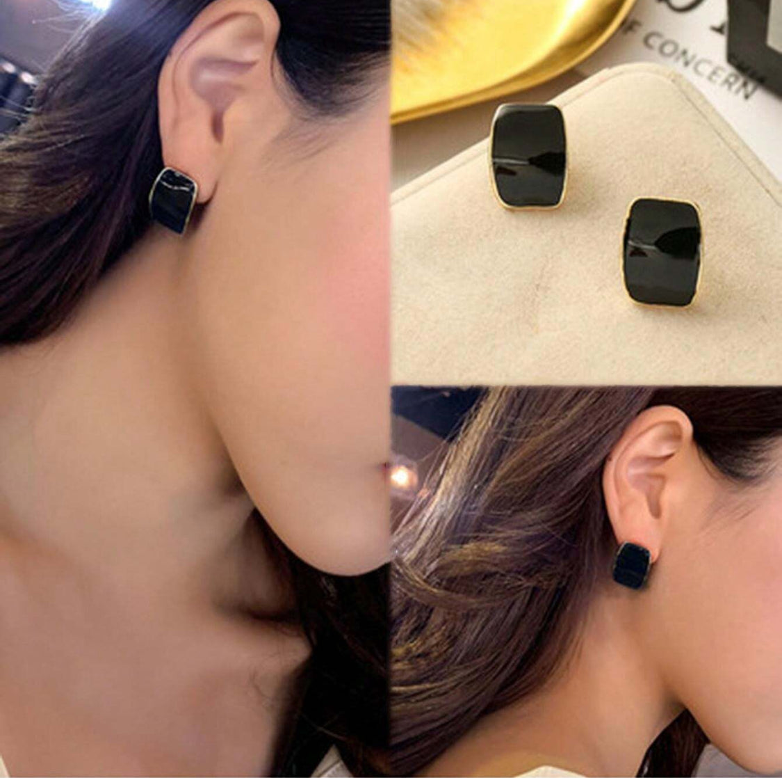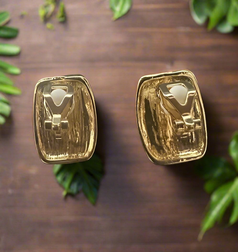 Add a touch of elegance and style to your outfit with our clip-on 3/4" bent gold square black button style earrings. These stunning earrings feature a beautiful blue button design and a clip-on mechanism for a comfortable and secure fit. Elevate your look and make a statement with these stylish earrings.