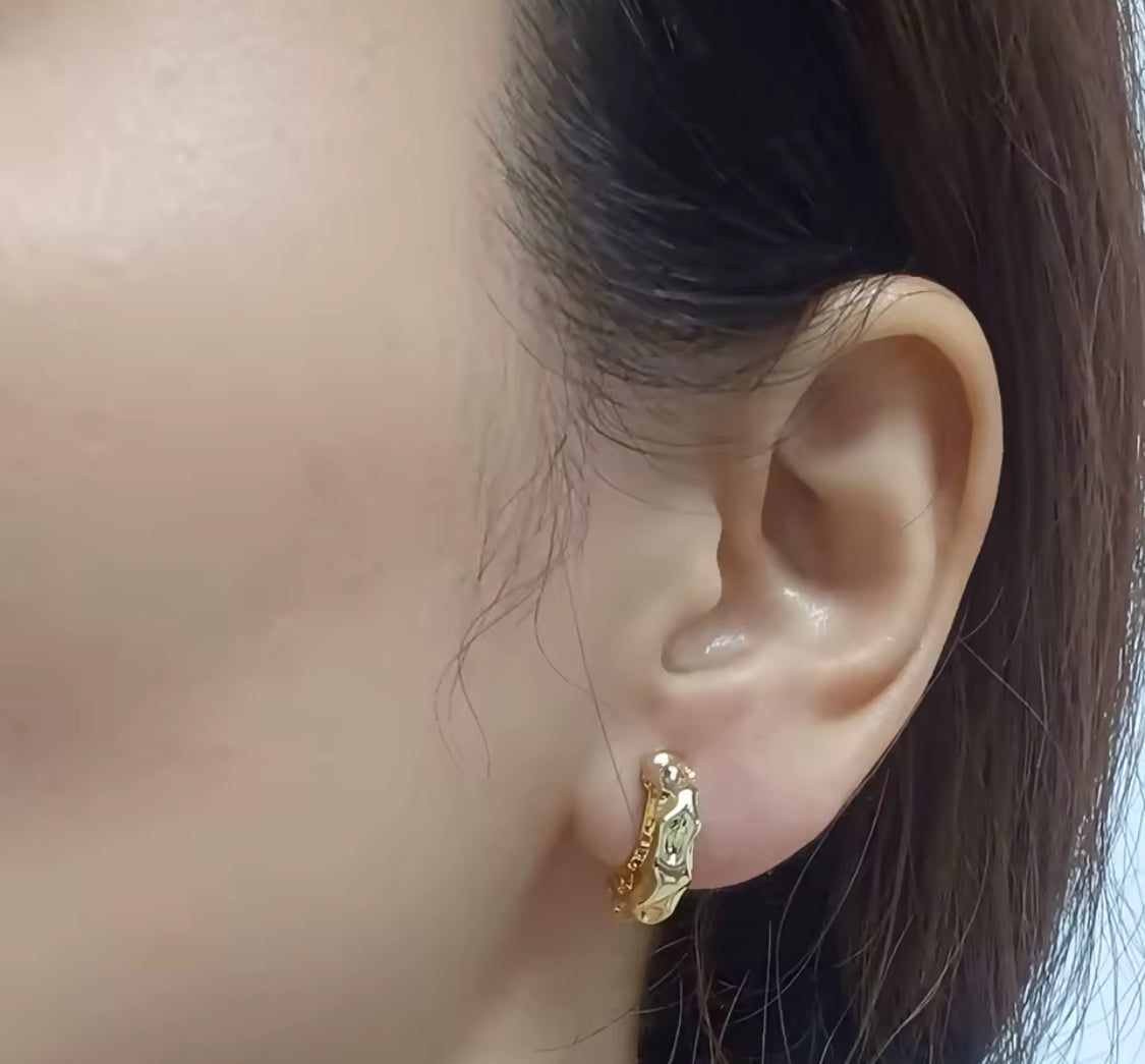 These 3/4" small gold hammered hoop earrings offer a stylish, comfortable alternative to pierced jewelry. Their lightweight design ensures all-day wear without irritation, while the hammered finish adds subtle texture for a sophisticated look. Perfect for elevating any outfit, these clip-on hoops blend elegance with ease, making them ideal for anyone seeking fashionable, fuss-free accessories.