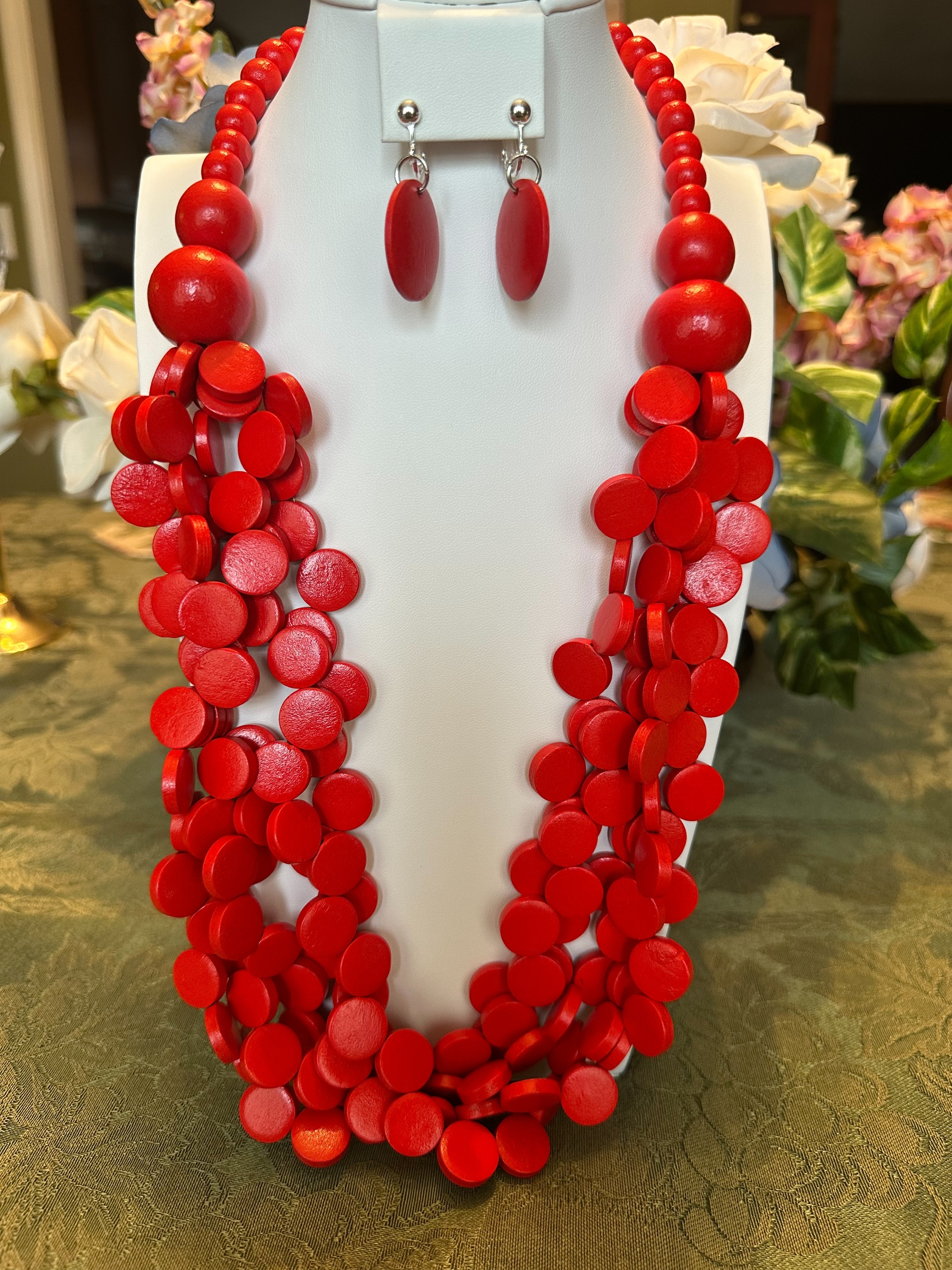 Upgrade your jewelry collection with our luxurious clip-on silver and red layered wood circle necklace and earring set. This stunning set features intricate silver and red circle designs, adding elegance and sophistication to any outfit. Perfect for any occasion, these clip-on pieces make accessorizing effortless.