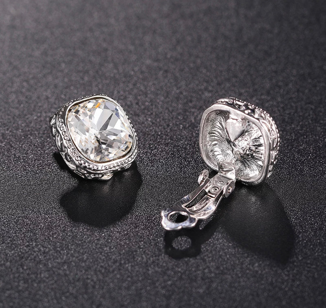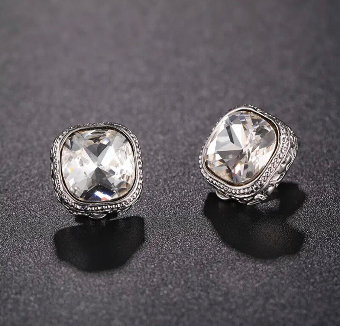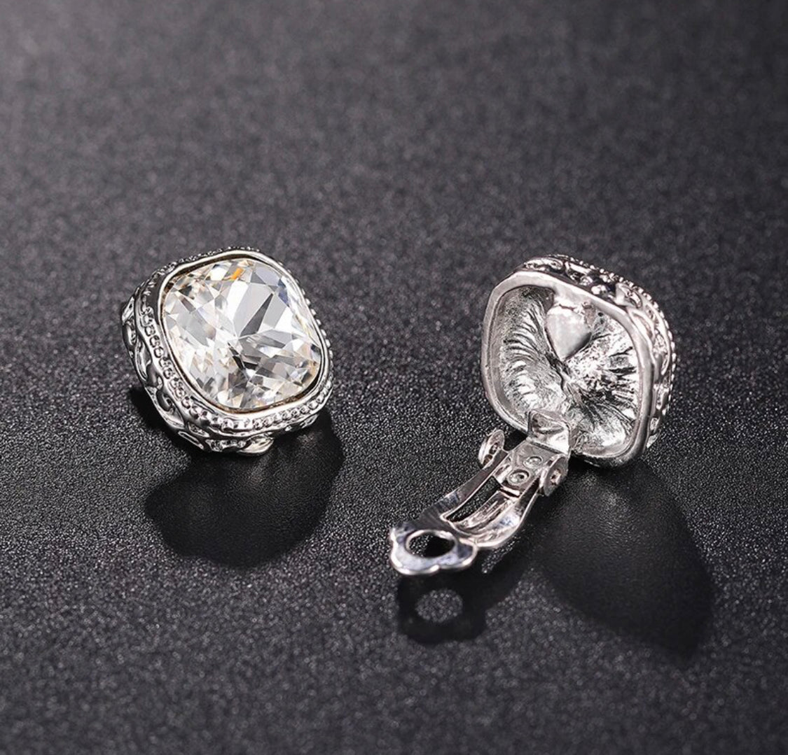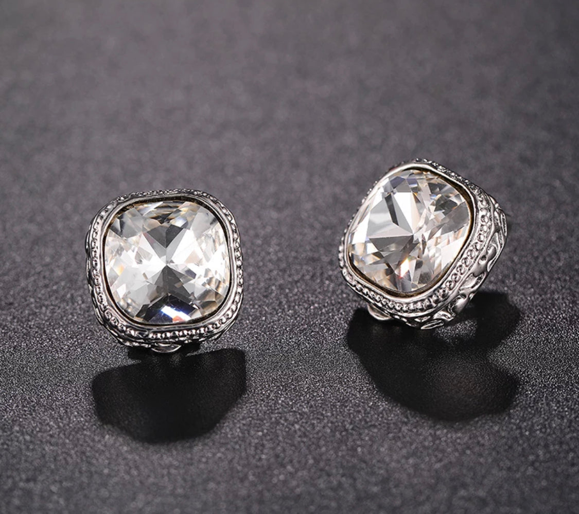 Sparkle and shine with these dazzling button style 1/2" clip-on earrings! Crafted with a half-inch silver setting, they feature a dazzling square-shaped clear stone that will add a touch of elegance to any outfit. Add a little luxury to your look with these chic earrings!