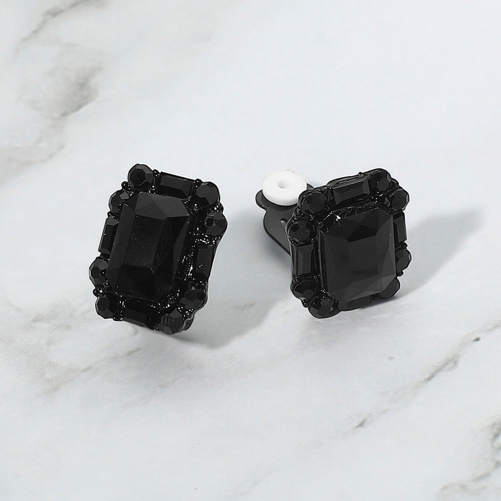 Enhance your style with these sleek 1" clip-on earrings featuring bold black stones in a classic square design. Their button style offers a comfortable, non-pierced option without sacrificing elegance. Perfect for adding a sophisticated, versatile touch to any look.