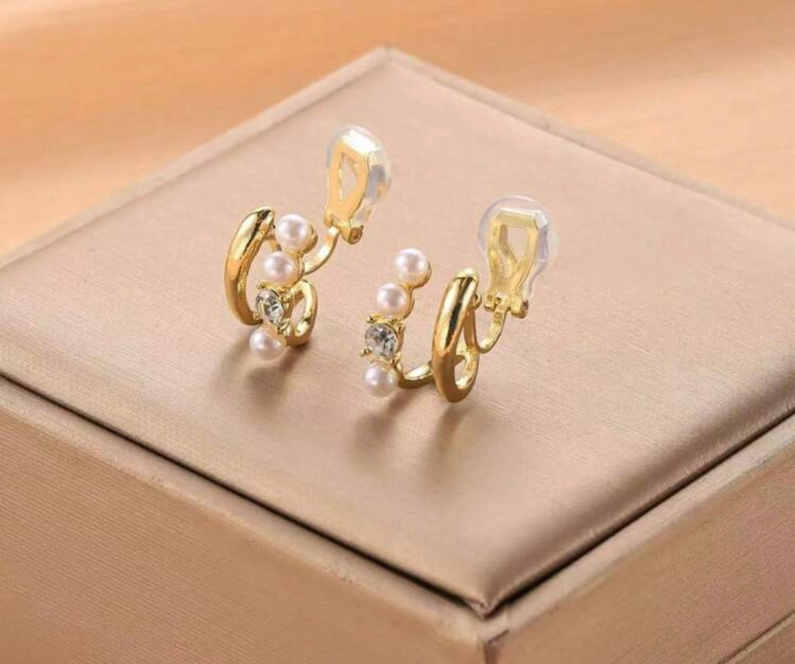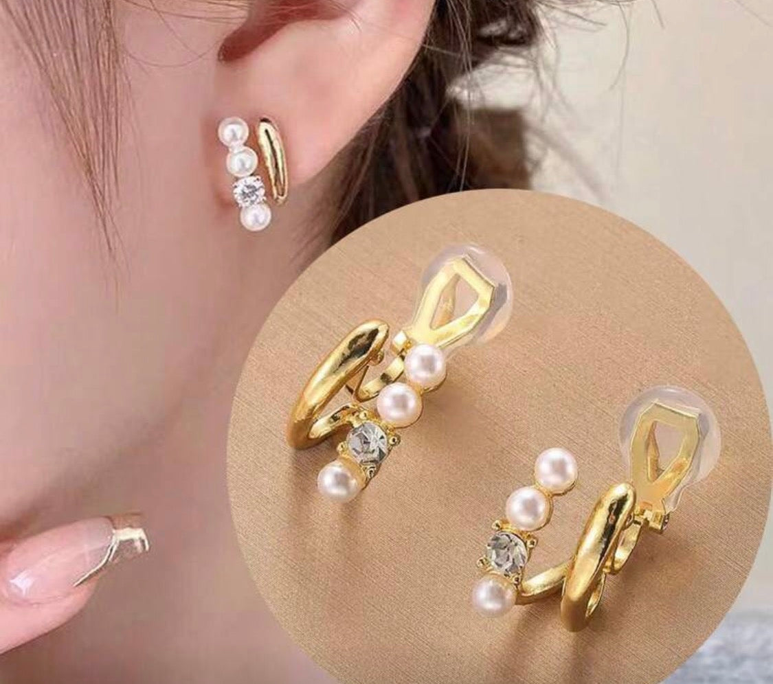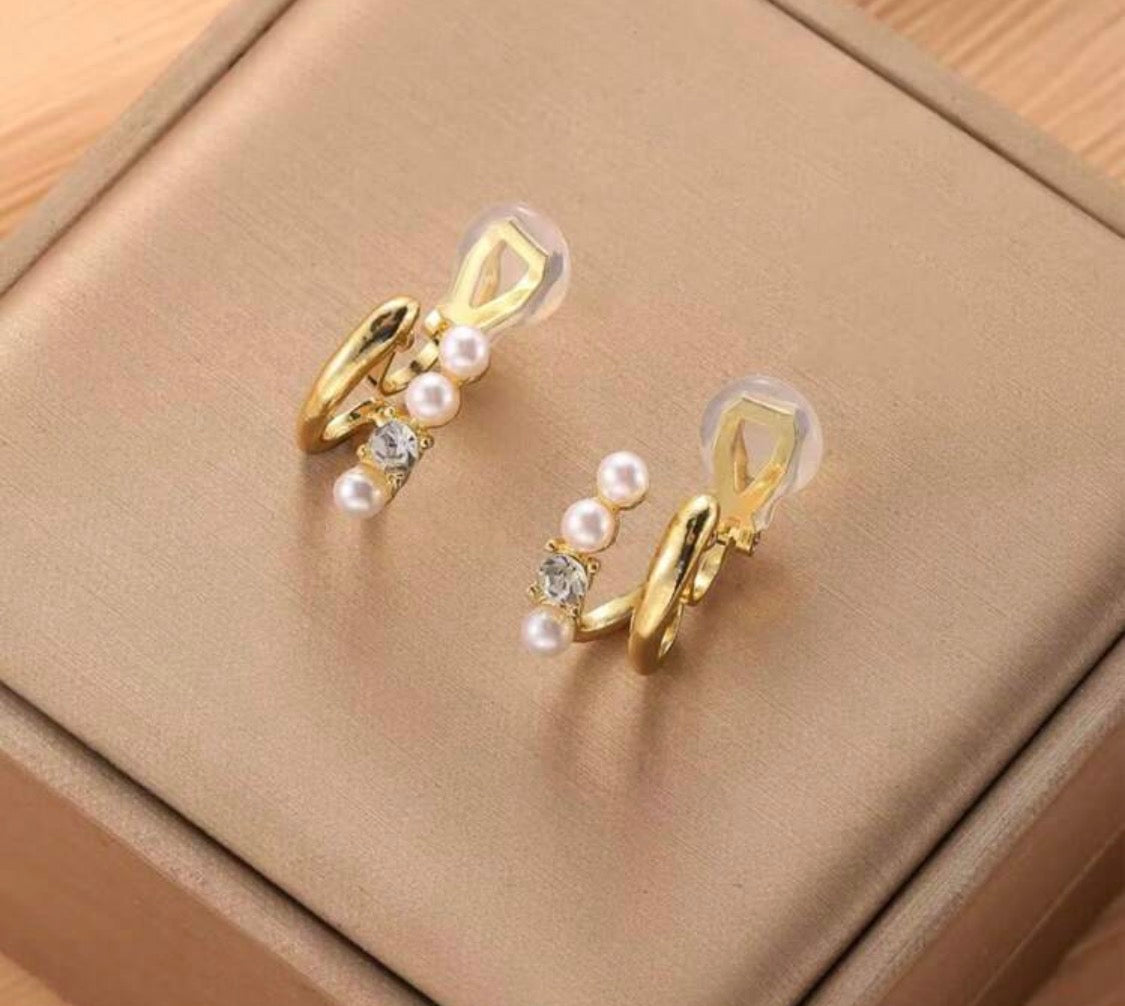 Elevate your everyday look with these stunning clip-on earrings featuring a sleek gold bar design paired with lustrous pearls and a sparkling center clear stone. At just 3/4" long, they're the perfect petite statement piece that works beautifully for any occasion—from the office to evening events. The secure clip-on mechanism ensures all-day comfort without piercing, making them ideal for sensitive ears or those who prefer versatile styling options.