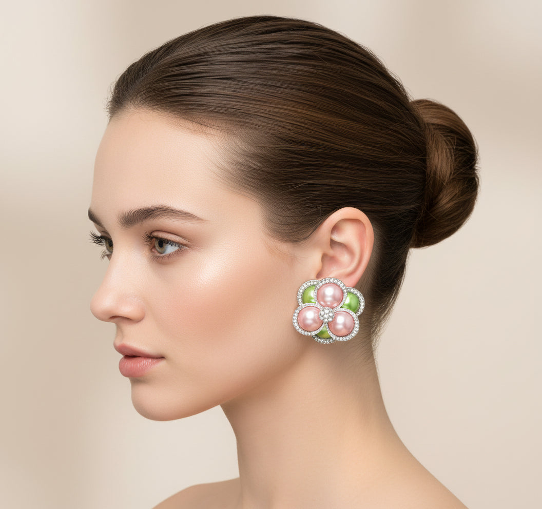 Make a bold statement with these stunning clip-on flower earrings. Featuring a charming button design in silver, soft pink, and fresh green, these 1½" beauties deliver eye-catching elegance without the commitment of pierced ears. The vibrant floral pattern adds a playful yet sophisticated touch to any outfit, while the secure clip mechanism ensures all-day comfort.