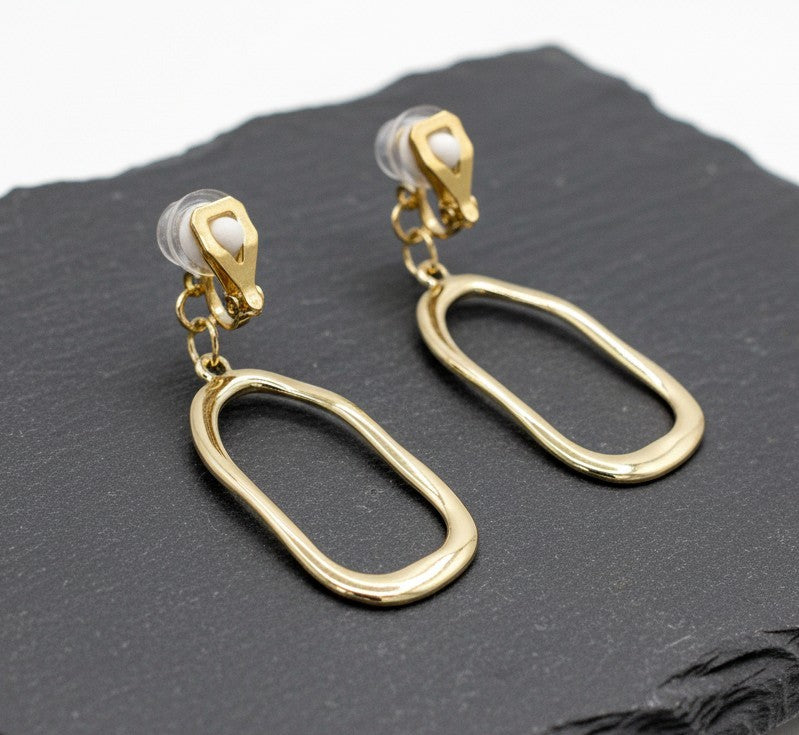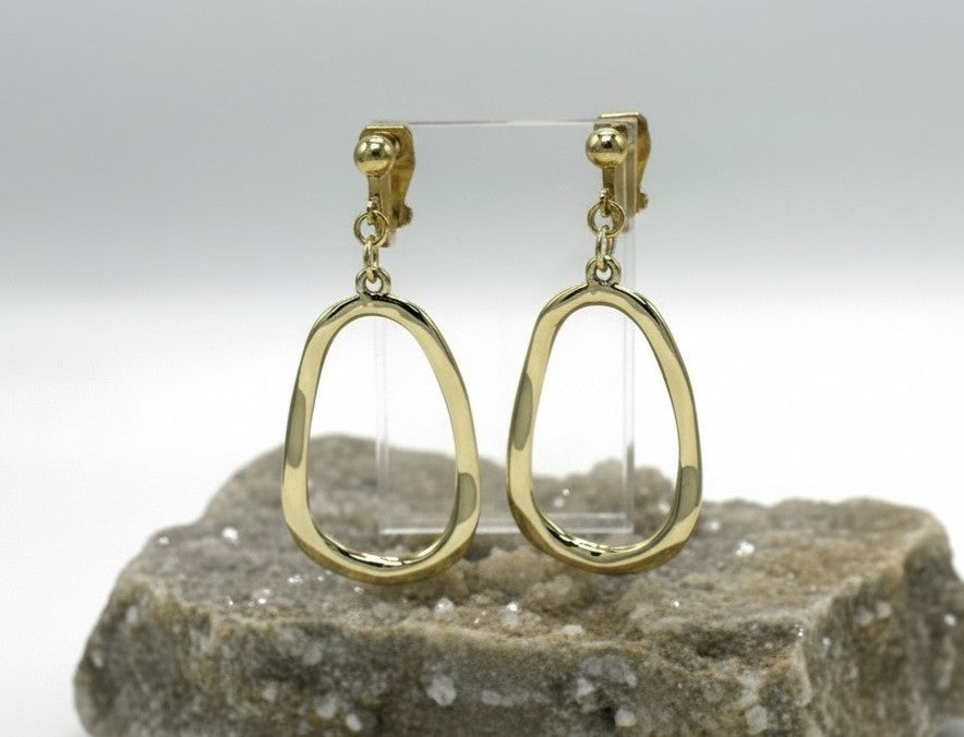 Embrace timeless elegance with these captivating clip-on hoop earrings that blend classic style with contemporary flair. The graceful, wavy design adds movement and dimension to the traditional hoop silhouette, creating visual interest that flatters every face shape. At 2 inches, these gold beauties offer the perfect balance of presence and proportion, catching light with every turn of your head. The smooth, polished finish radiates luxury while remaining versatile enough for any occasion—from casual brunches to evening events.