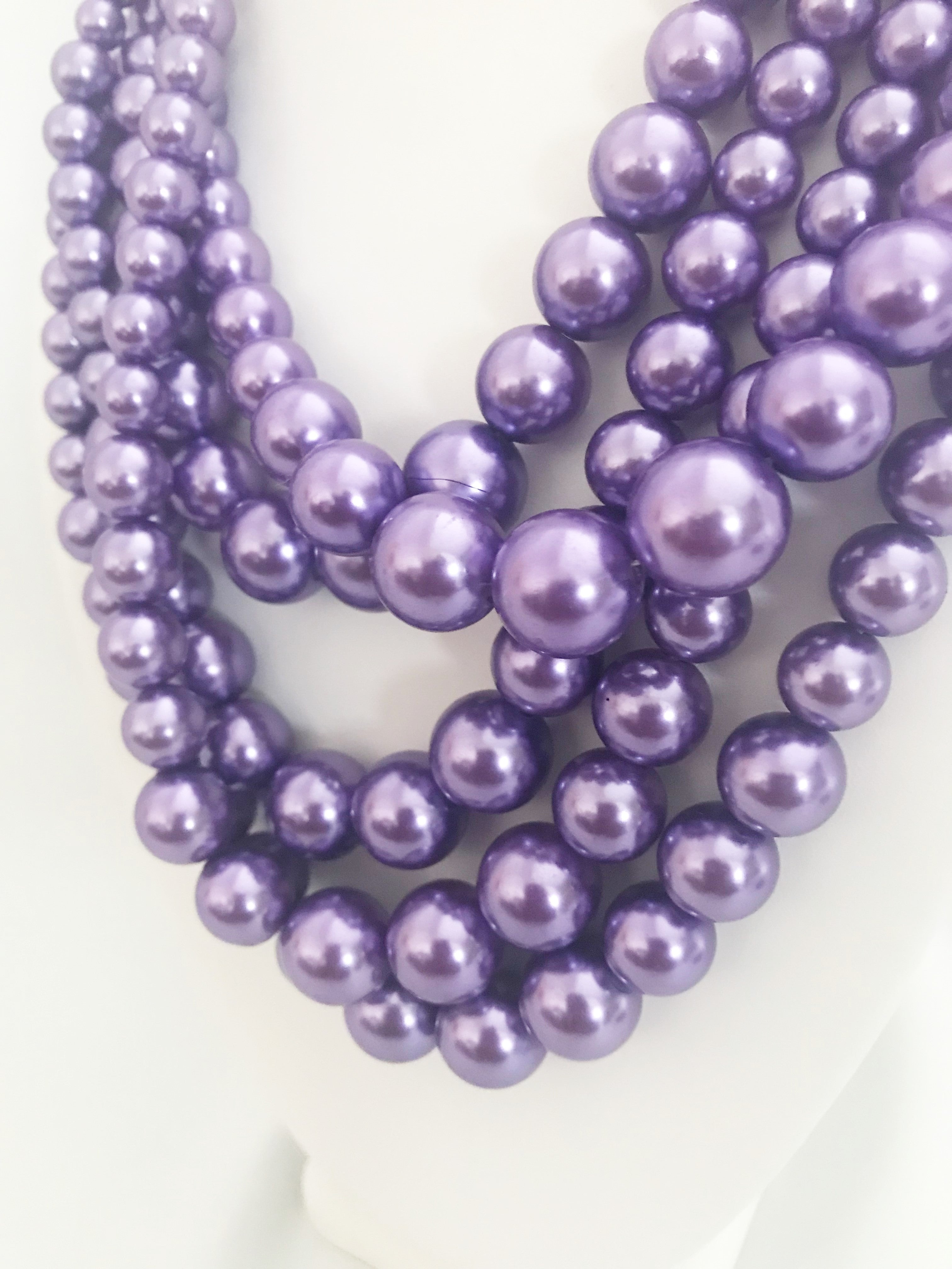 Elevate your accessory game with this stunning clip-on silver and purple five-strand pearl necklace. Featuring lustrous imitation pearls arranged in an elegant multi-strand design, this piece delivers sophisticated style without the commitment of pierced jewelry. The rich purple hues complement the silvery finish beautifully, creating a versatile look that transitions seamlessly from casual to formal occasions. Perfect for those seeking timeless elegance with modern convenience, this necklace clips securely in place for all-day wear.