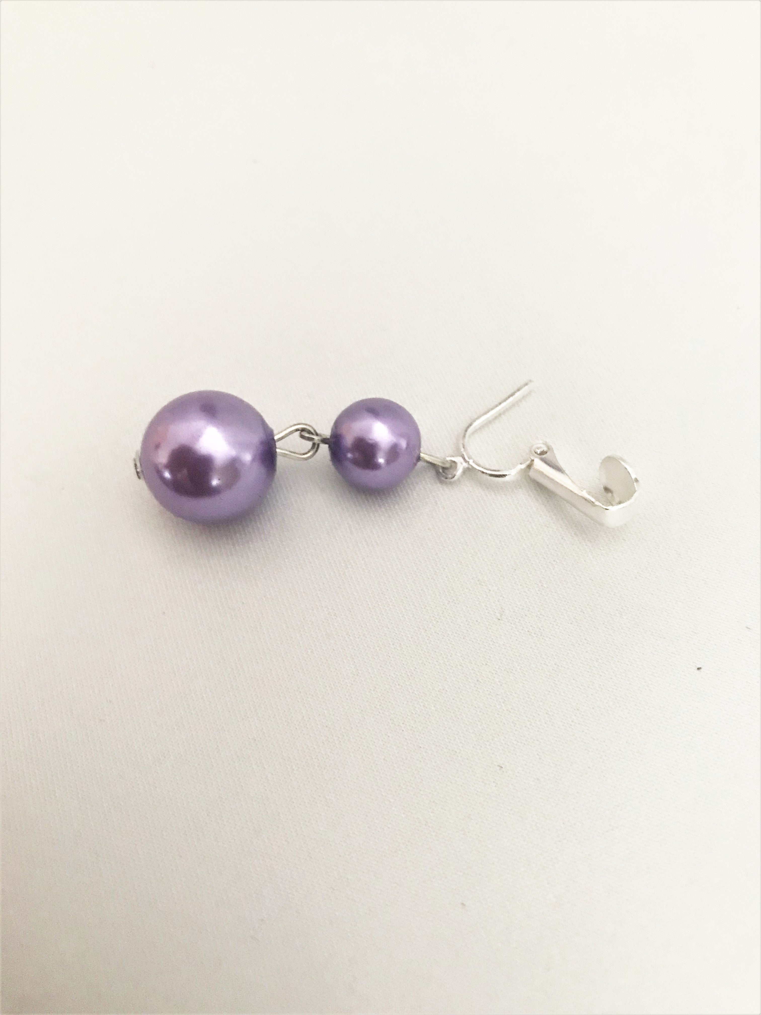 Clip on silver and purple 5 strand pearl necklace set