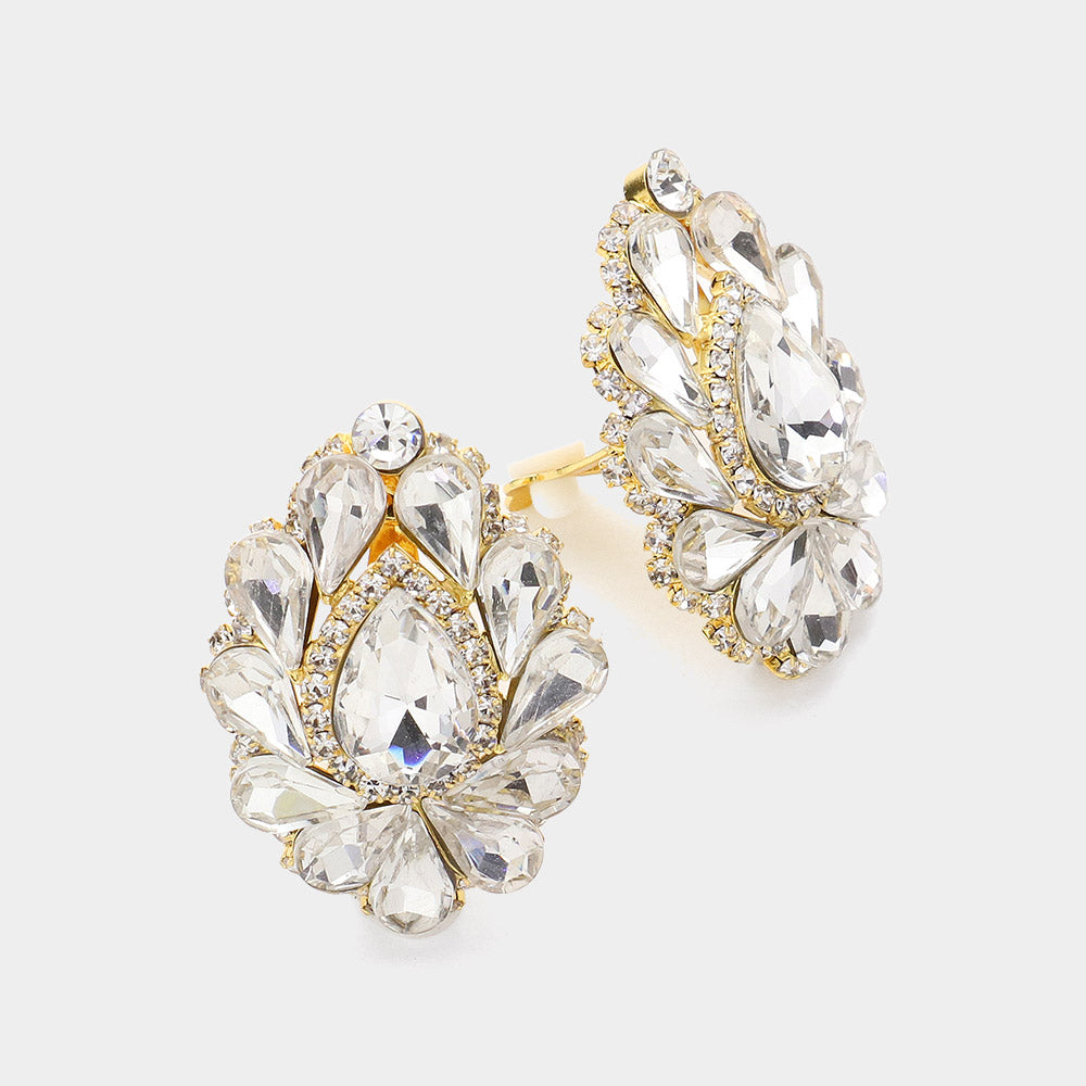 Elevate your style effortlessly with these 1 1/2" clip-on earrings featuring a sleek gold finish and striking clear slanted stone teardrop design. Comfortable and easy to wear, they add a bold yet elegant touch to any outfit—perfect for those who want standout accessories without the commitment of pierced ears.