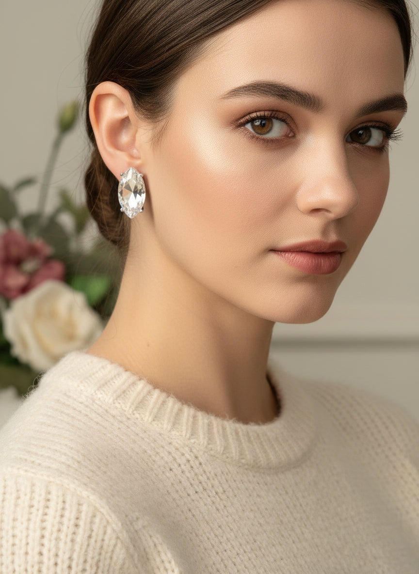 Elevate your accessory game with these sophisticated clip-on earrings showcasing a refined 1 1/4" pointed silhouette. The warm gold finish pairs beautifully with sparkling clear stone, creating an elegant look that transitions seamlessly from day to night. Sharp geometric edges deliver a contemporary edge while the crystalline accents catch light with every movement.