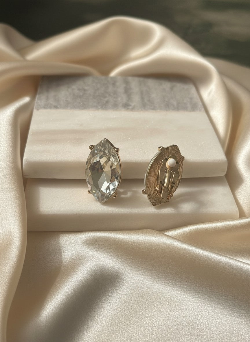 Clip on 1 1/4" gold and clear stone pointed edge earrings
