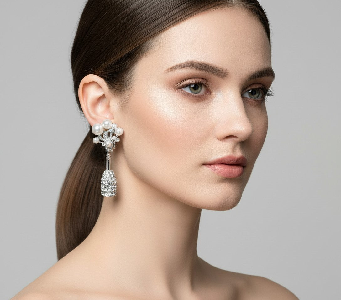 Elevate your jewelry collection with these captivating clip-on dangle earrings. The luxurious combination of polished silver, clear stones, and white pearl creates an understated yet striking aesthetic that complements any wardrobe. At 1 3/4" long, these dangles offer substantial presence without overwhelming your features, while the smooth clip-back design delivers secure, pain-free wear throughout the day.