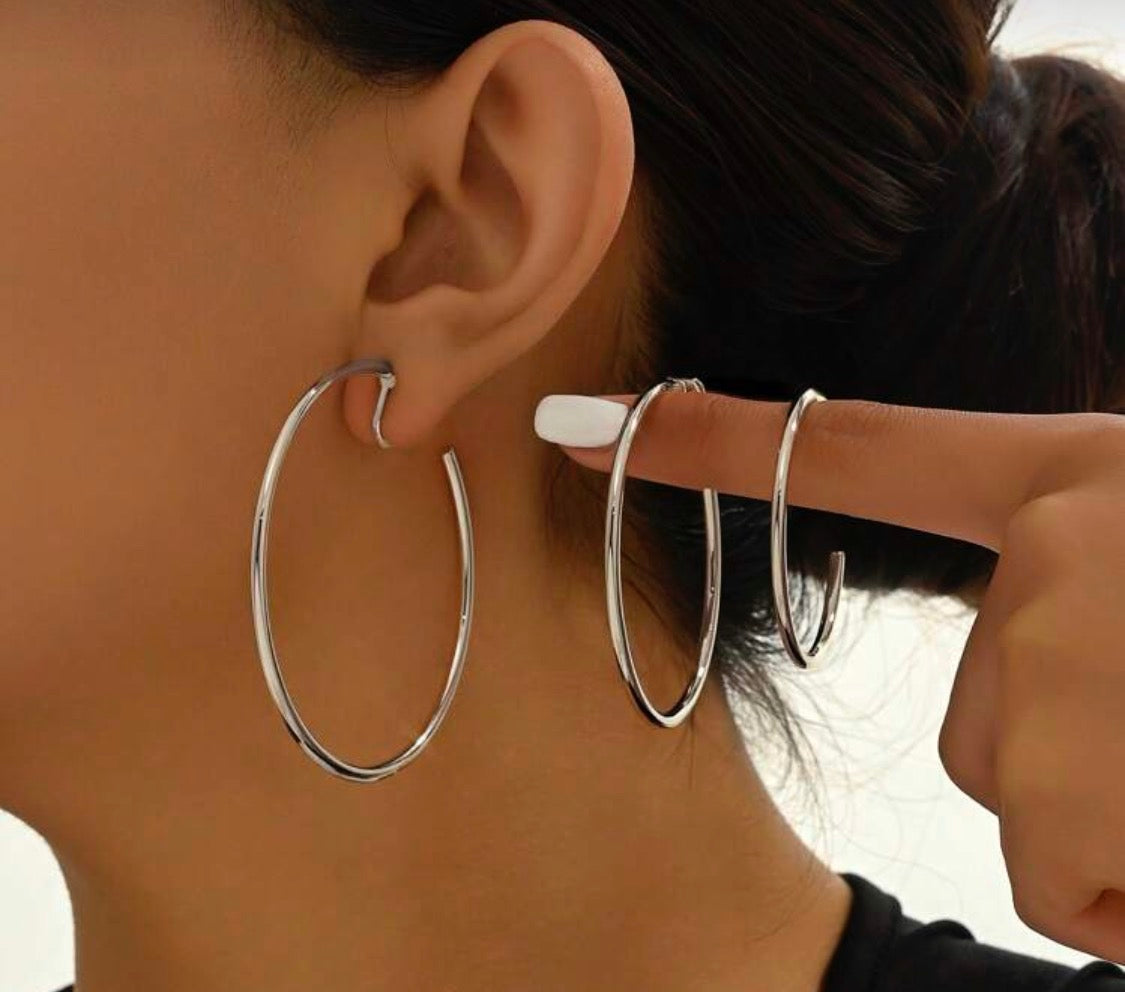 Elevate your style effortlessly with these 3 pairs of shiny silver open back hoop earrings. Designed with clip-on backs, they offer a comfortable, no-piercing option for versatile wear. Their sleek, reflective finish adds a touch of sophistication to any outfit, making them perfect for both casual and formal occasions. This set gives you multiple looks to mix and match, enhancing your accessory collection with ease and flair.