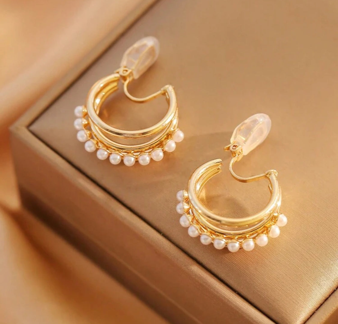 Elevate your style effortlessly with these 1" gold clip-on hoop earrings featuring elegant white pearl accents and a delicate cutout design. Perfect for those without pierced ears, they offer a comfortable fit while adding a touch of sophistication to any outfit. Ideal for both everyday wear and special occasions, these earrings combine classic charm with modern convenience.
