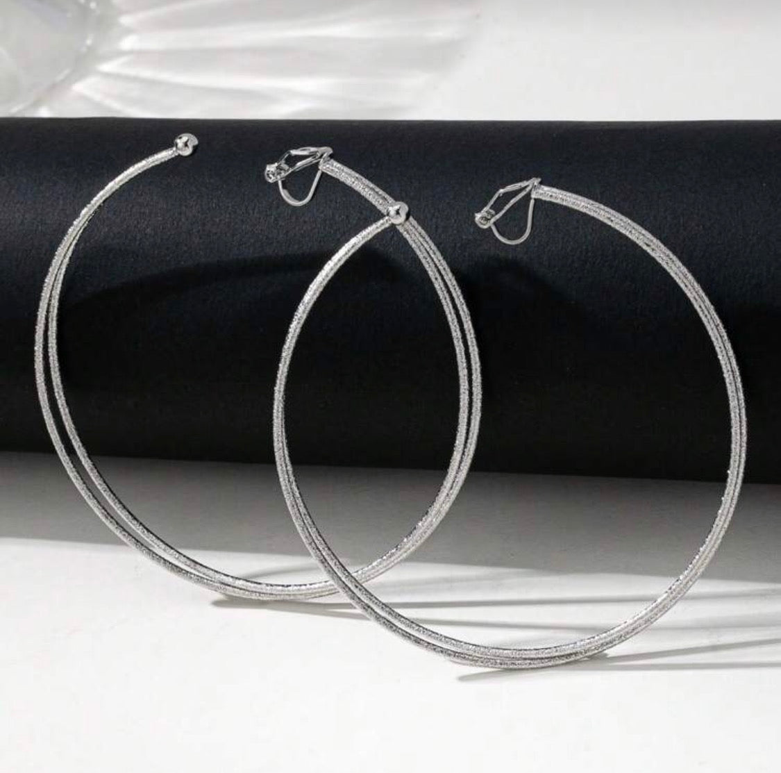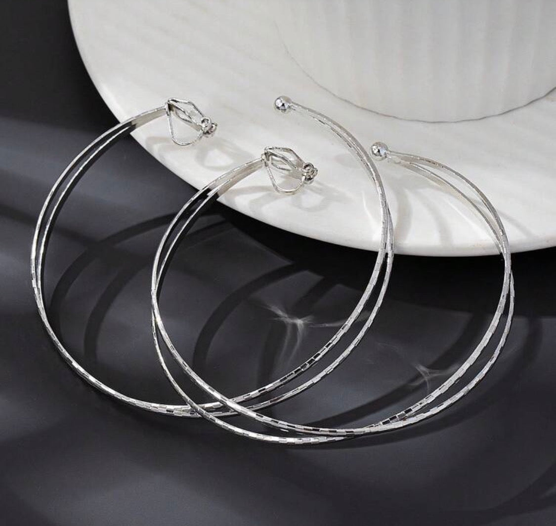 Clip on silver 3 1/4" XL block print twisted hoop earrings