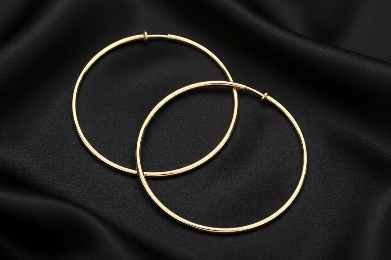 Upgrade your earring collection with our gorgeous shiny gold hoops! Measuring at XL 3 1/4", these clip-on earrings feature a spring back for secure and comfortable wear. Plus, they are lead-compliant. Add a touch of elegance to any outfit with these stunning hoops.