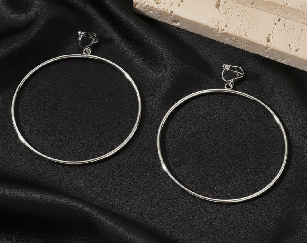 Elevate your accessory game with these impressive 3-inch silver dangle hoops that deliver maximum impact without piercing. The precision-engineered small clasp grips securely throughout your day, letting you focus on looking fabulous rather than adjusting your earrings. T