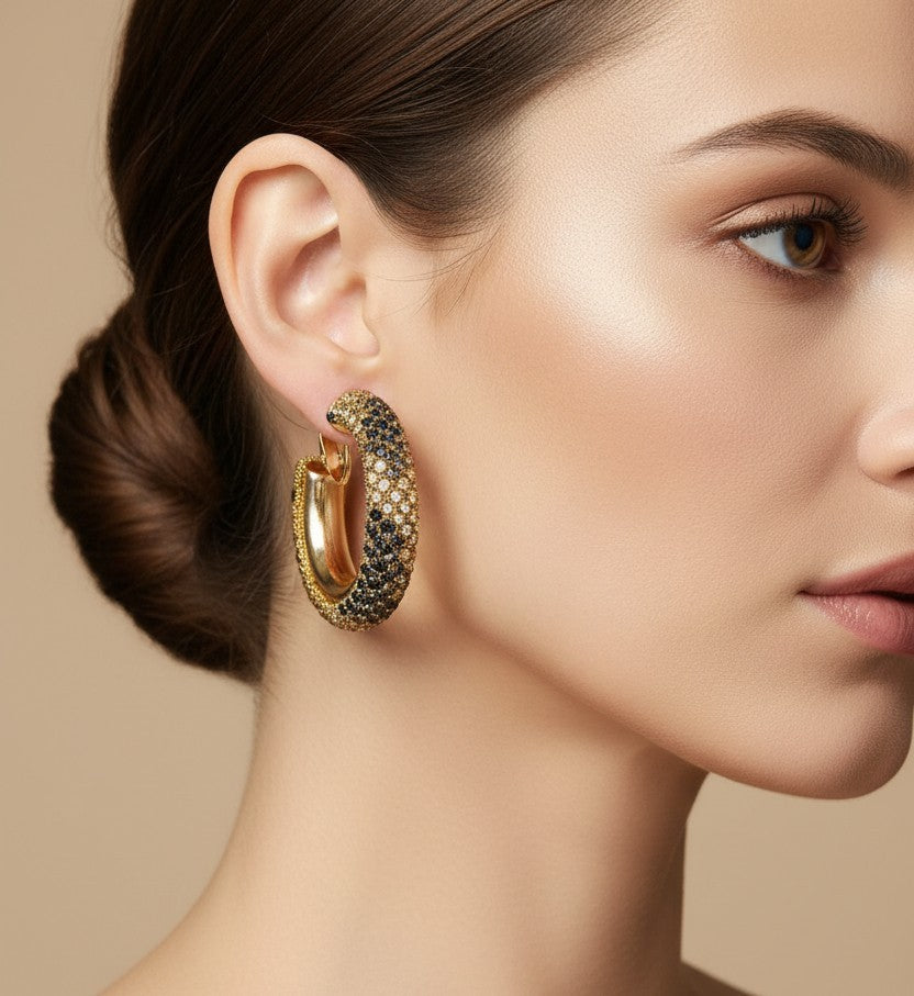Elevate your accessory game with these stunning clip-on hoop earrings featuring a bold gold and black animal print stone design. The 1 1/2" open back hoops showcase a luxurious gold finish that catches the light beautifully. Perfect for those who love statement pieces without commitment, these clip-ons offer all-day comfort and versatility.