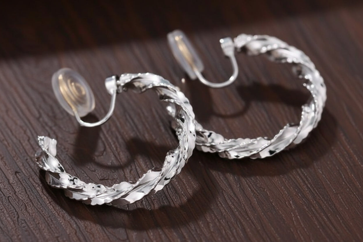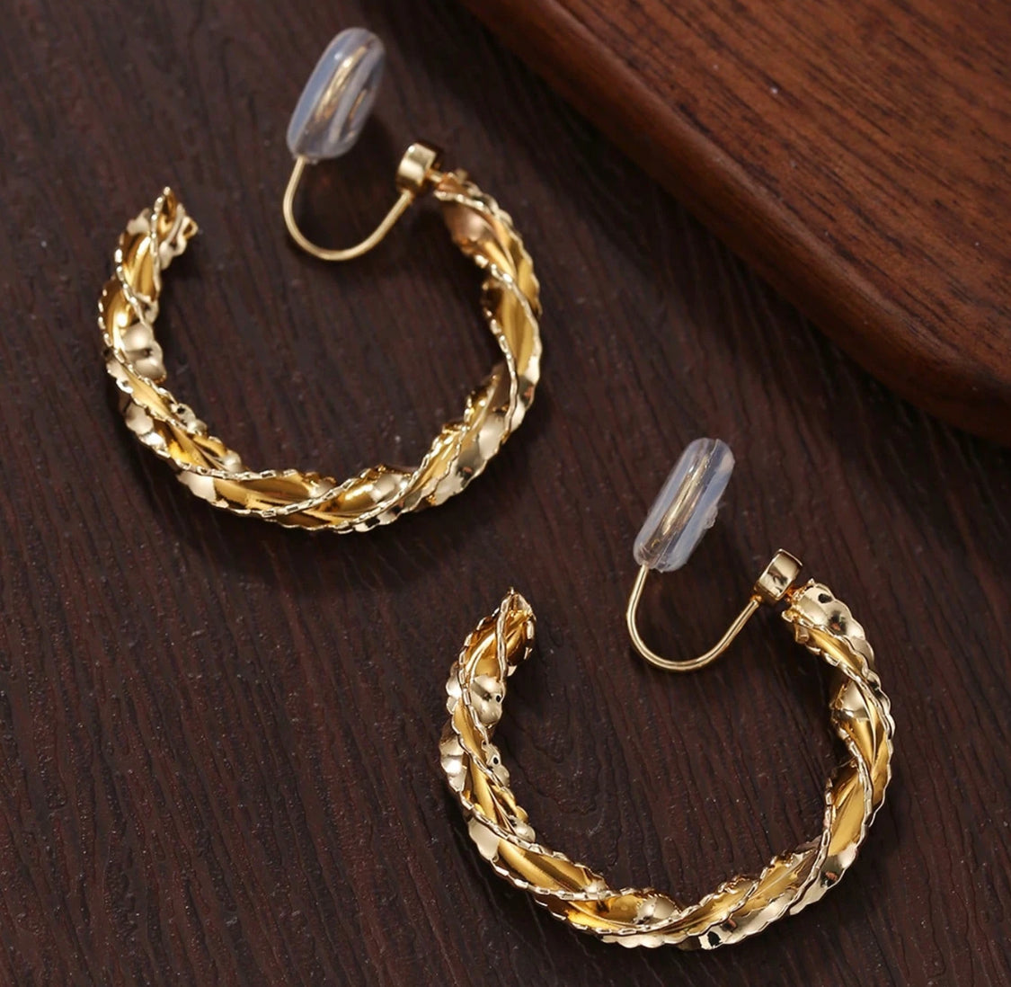 Clip on 1 1/4" comfort fit gold sparkle twisted hoop earrings