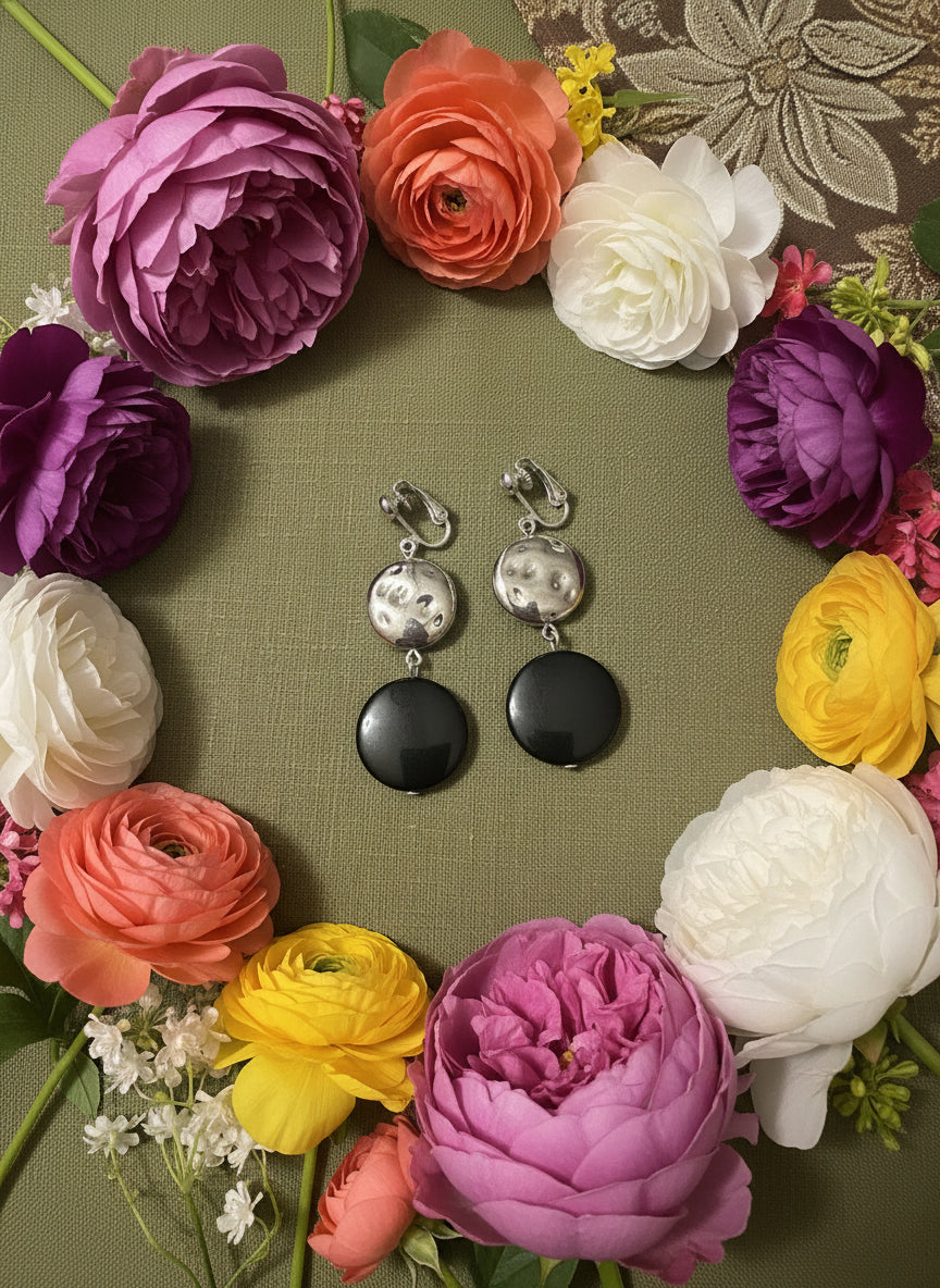 This three-piece clip-on ensemble combines timeless elegance with practical versatility. Featuring lustrous silver accents paired with bold black flat beads, the multi-strand construction delivers sophisticated layering appeal. The coordinated set includes a statement necklace and matching earrings, allowing you to curate a polished look with minimal effort.