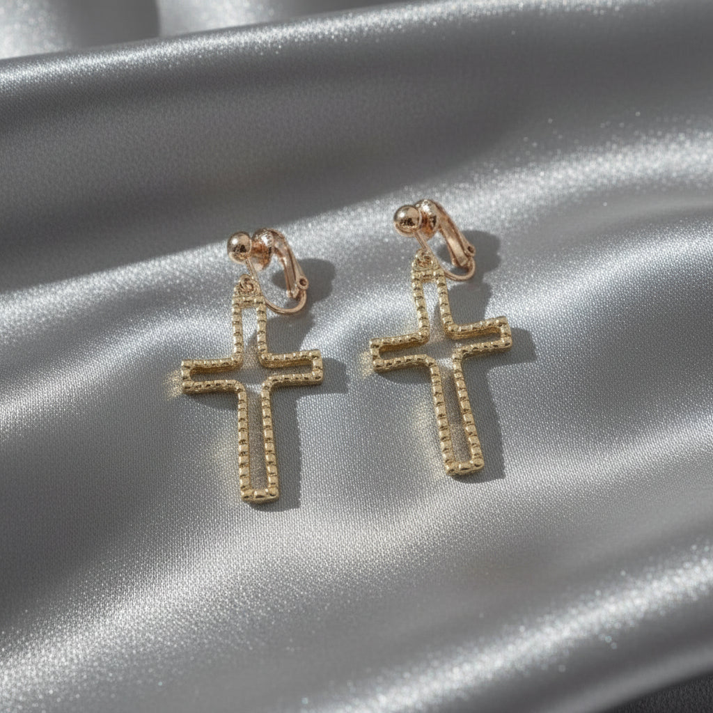 Embrace elegance and faith with our statement Clip on 36" long gold, black, and pearl bead cross necklace and earring set. The perfect addition to any outfit, this set exudes sophistication and adds a touch of spirituality to your look. Stay effortlessly stylish with this versatile set.