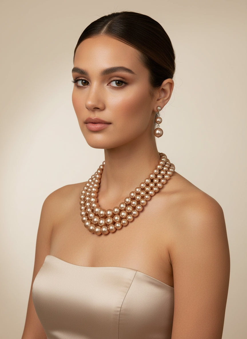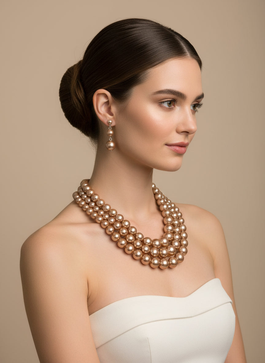 Elevate your accessory game with this stunning pierced silver and brown bead three-strand necklace and earring set. Perfect for those who love versatile, no-commitment style, these pieces feature lustrous silver tones paired with rich brown beads for a sophisticated pop of color. The three-strand design creates dimension and visual interest, while the clip on earrings offer comfortable wear without piercing.