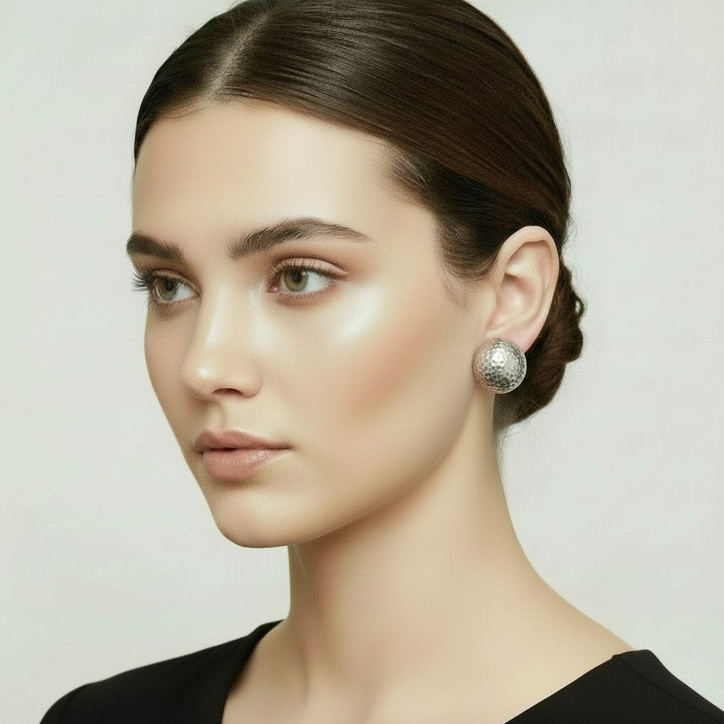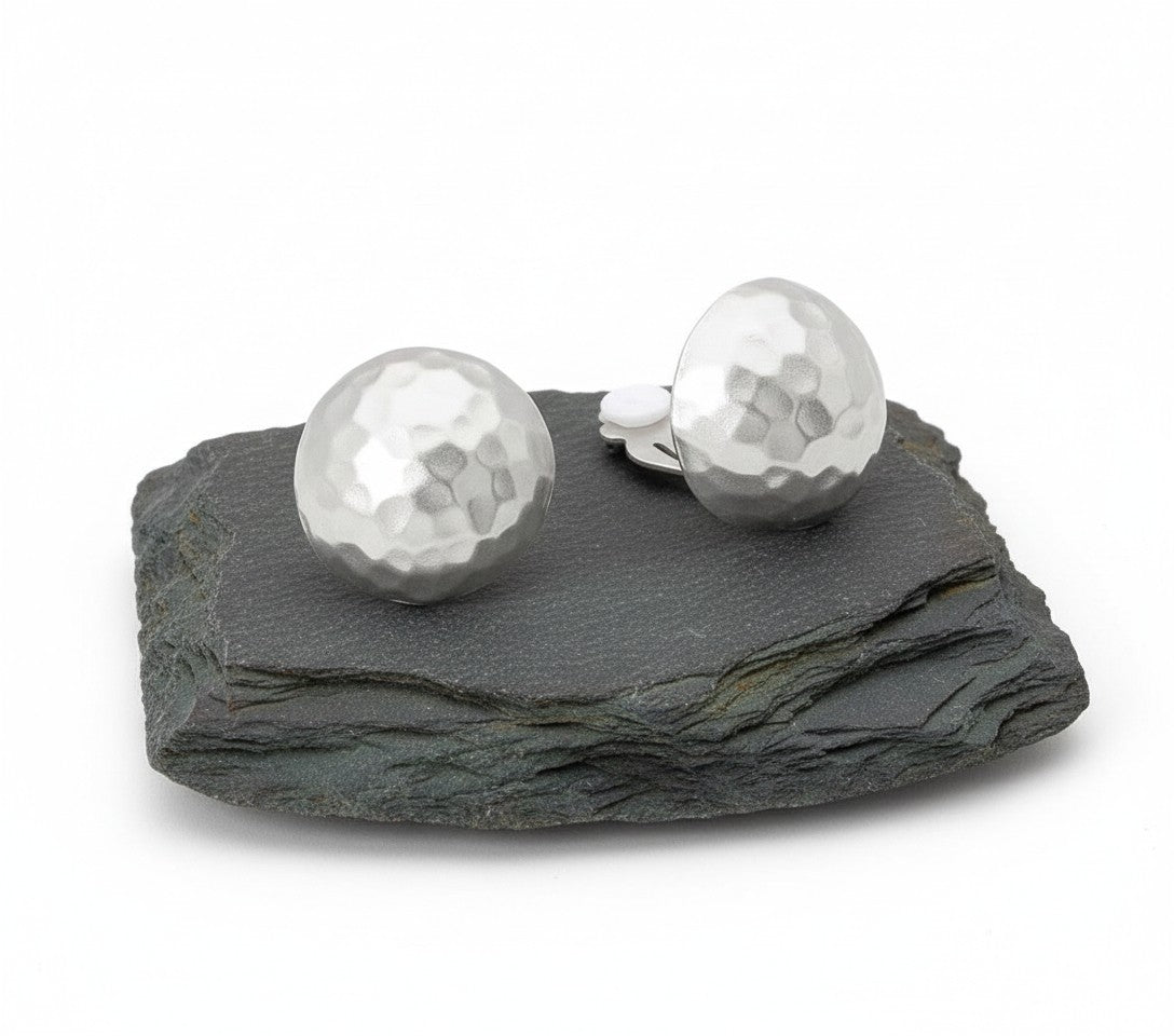 Elevate your accessory game with these striking clip-on earrings featuring a matte silver 1" hammered round button design. The raised, textured surface catches light beautifully, adding dimension and sophistication to any look. Perfect for those seeking statement pieces without commitment, these earrings deliver luxury appeal with the comfort and convenience of secure clip-on closures.