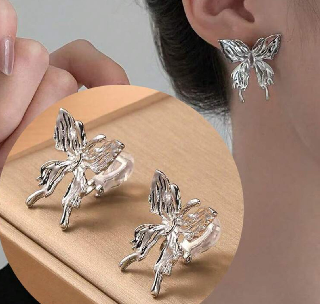 Elevate your style effortlessly with these 1" silver butterfly button earrings, featuring sparkling clear stone. Designed as clip-ons, they offer a comfortable, no-piercing fit while adding a touch of elegance to any outfit. Perfect for those seeking a chic, versatile accessory that shines with every movement.