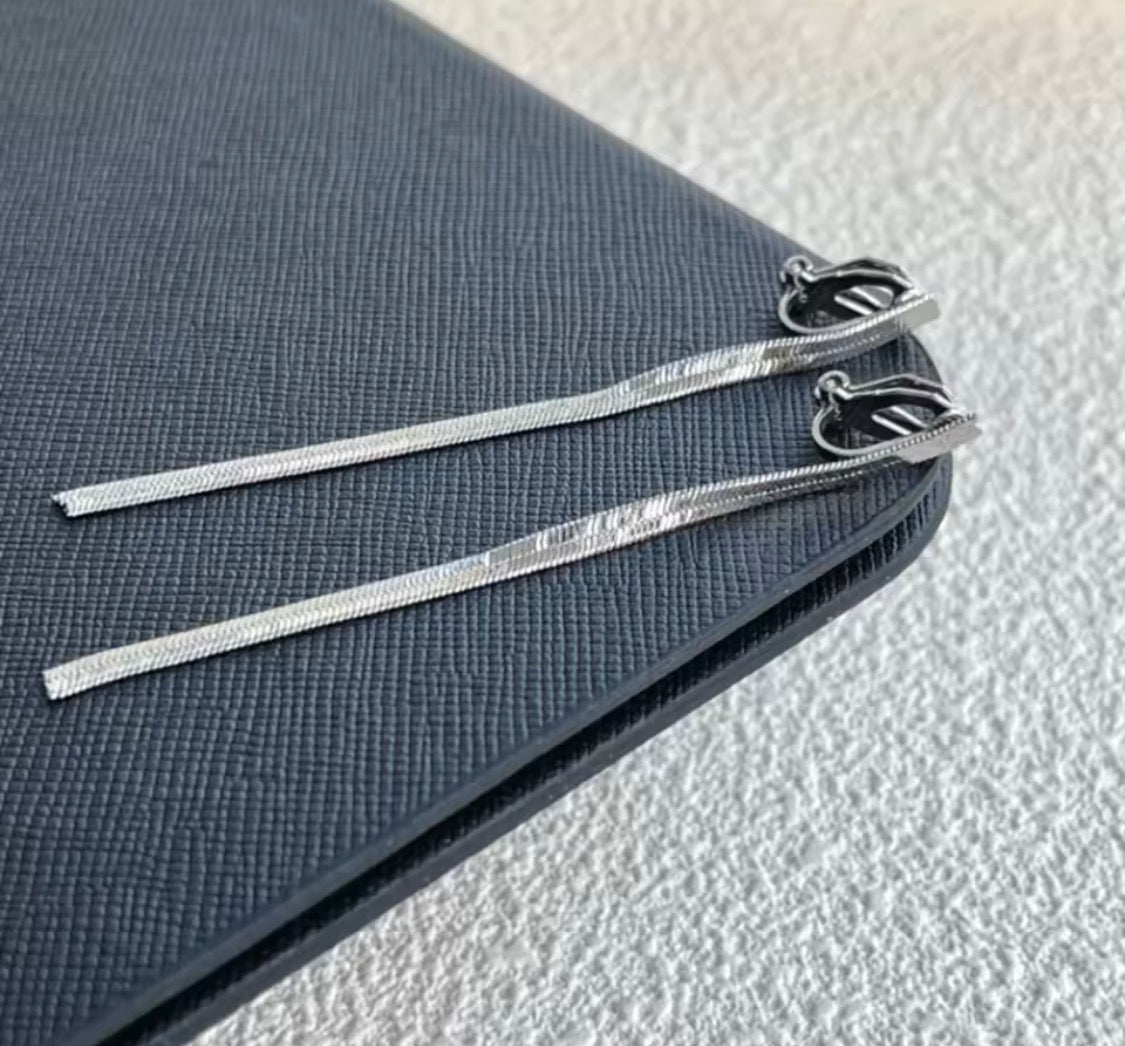 Trendy clip on 2 3/4" silver dangle snake chain earrings