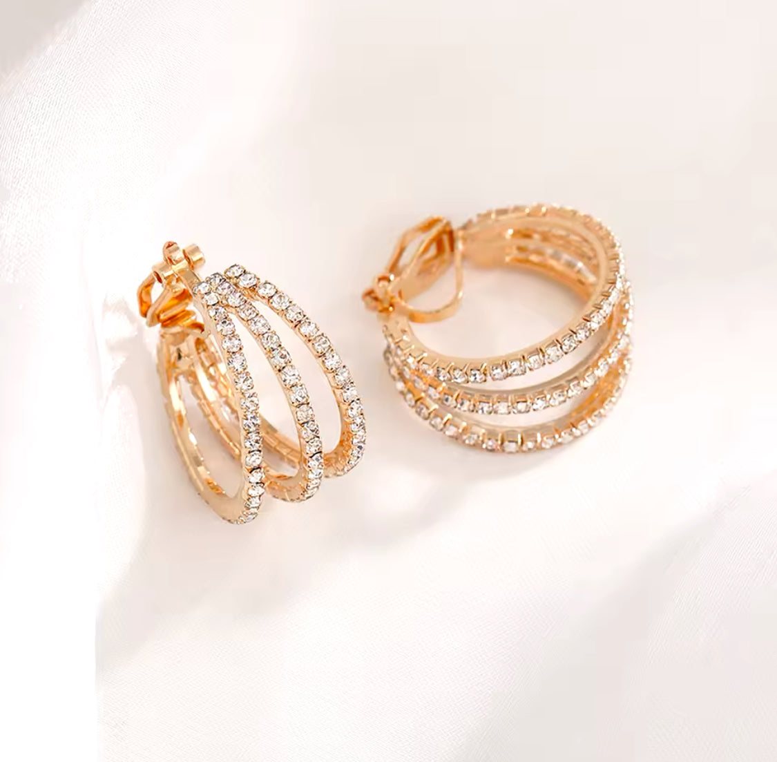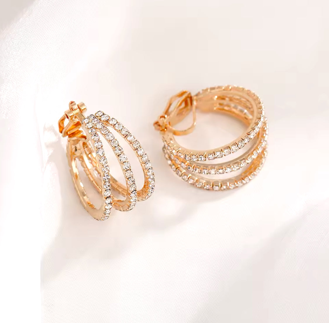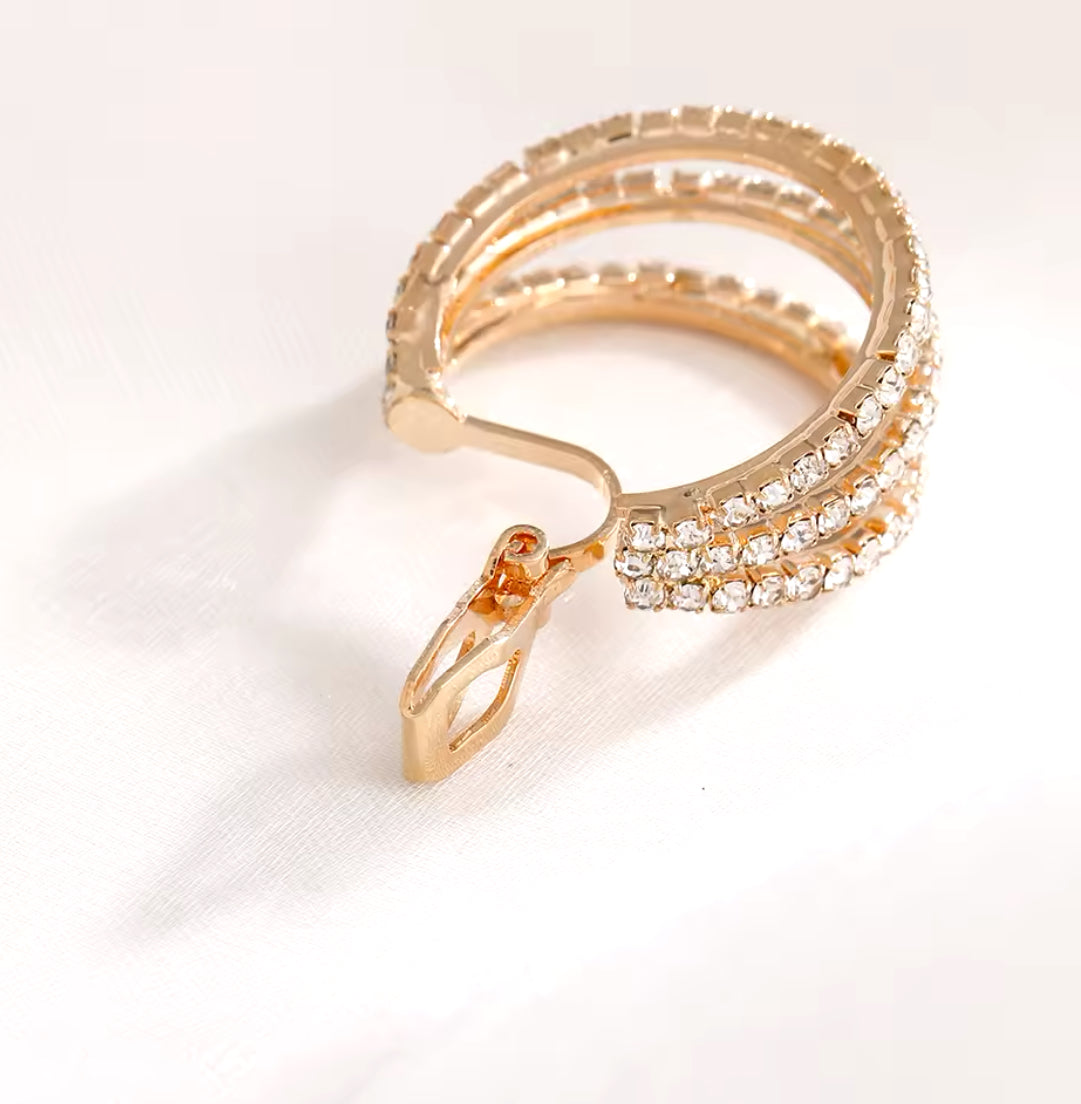 Add a touch of elegance to your look with our clip-on 3/4" gold and clear stone cutout wide hoop earrings! With their unique design and comfortable clip-on feature, these earrings are perfect for anyone looking to make a statement. Elevate any outfit and catch everyone's eye with these must-have accessories.