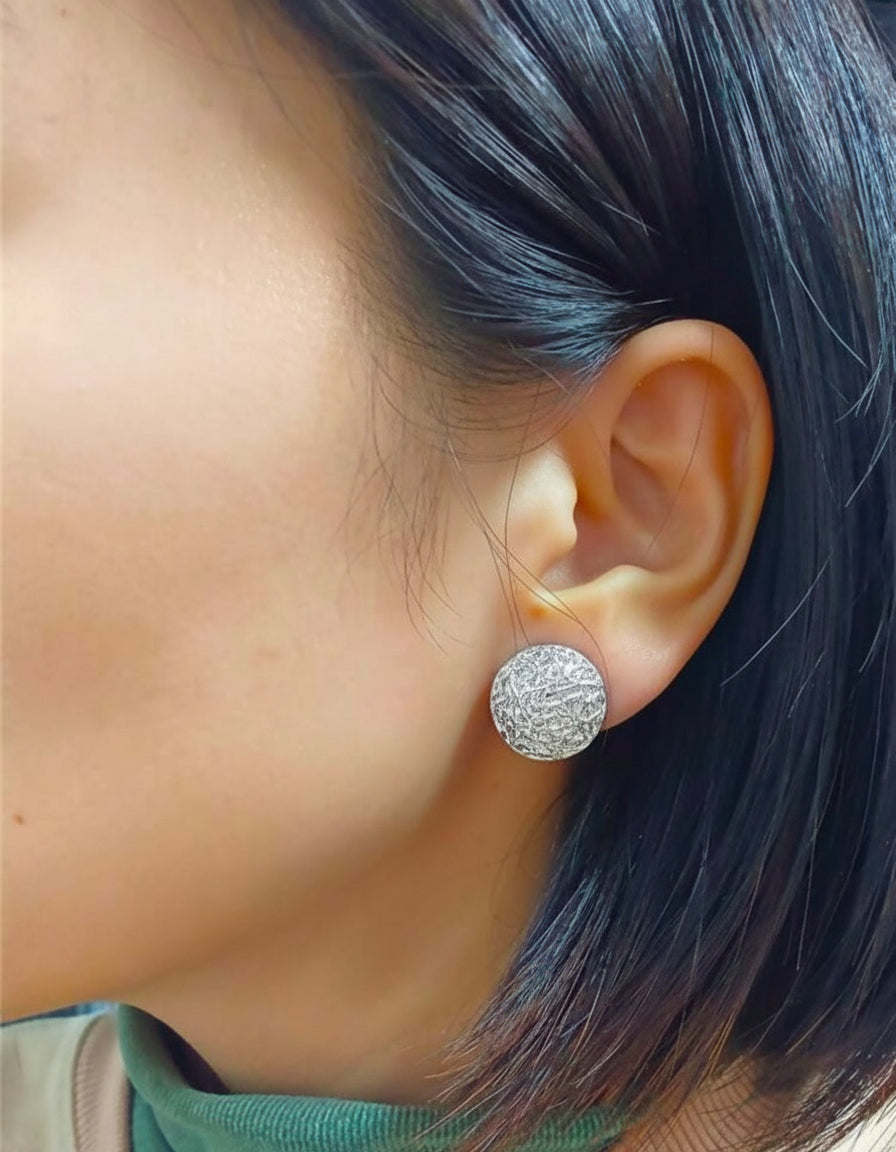 Experience the subtle elegance of our Clip on 3/4" small silver hammered round button style earrings. Designed for comfort and style, the clip-on feature makes them accessible to all. Delicately crafted with a unique hammered texture, they radiate a timeless charm. Elevate any outfit with these versatile and beautiful earrings!