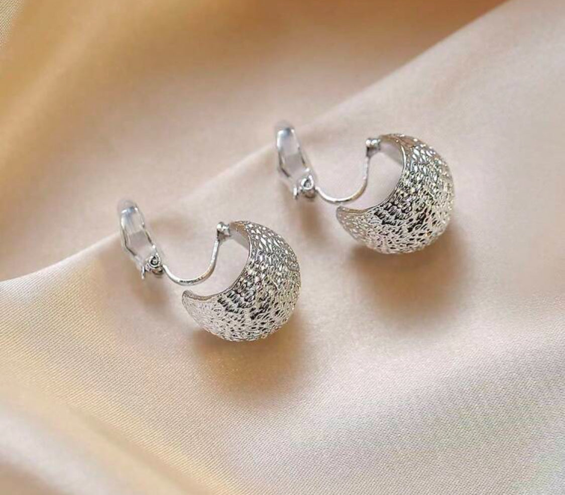 Transform your style with our clip-on 3/4" small silver pinhole textured scoop style earrings! Effortlessly add a touch of elegance to any outfit with their unique textured design and versatile clip-on feature. No pierced ears? No problem! Get the same stylish look without the commitment.