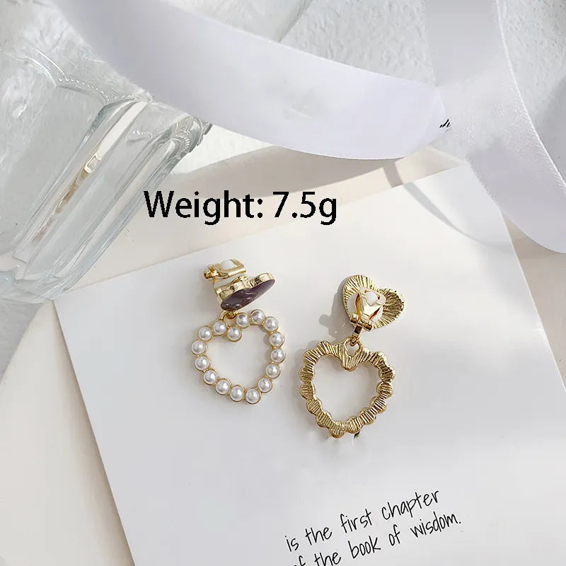 Add a touch of elegance to your outfit with these stunning clip-on earrings! Each earring features a 1 1/2" gold, purple heart, and white pearls, perfect for any occasion. No need for pierced ears, making them suitable for all. Upgrade your accessory game with these beautiful statement earrings!