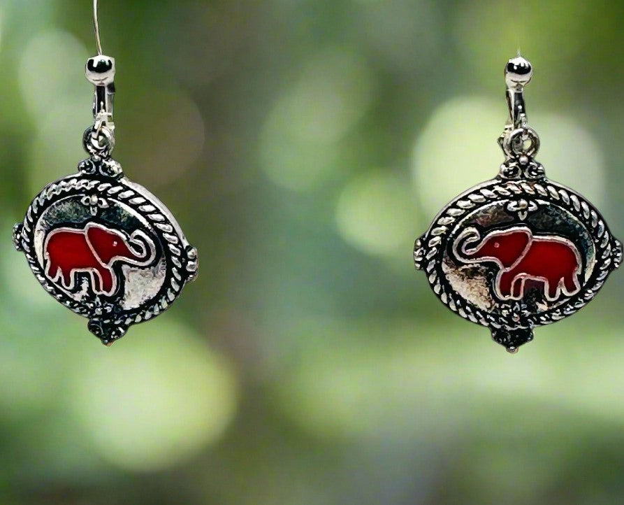 Unleash your wild side with these stunning silver and red elephant earrings! The clip-on design ensures all-day comfort, while the 1 1/2" length adds a touch of drama to any outfit. Make a statement and embrace your inner strength with these eye-catching dangle earrings.