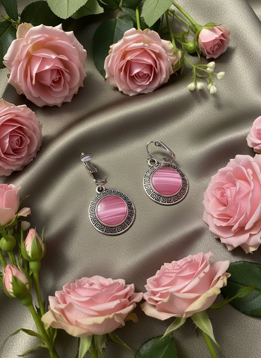 Transform your everyday look with this elegant clip-on set that combines lustrous silver with soft pink shell accents. Whether you're seeking a cohesive jewelry ensemble or mixing pieces to suit your mood, this versatile pairing delivers effortless sophistication. The clip-on design means no commitment—wear it for special occasions or layer it into your daily rotation without the permanence of pierced earrings.