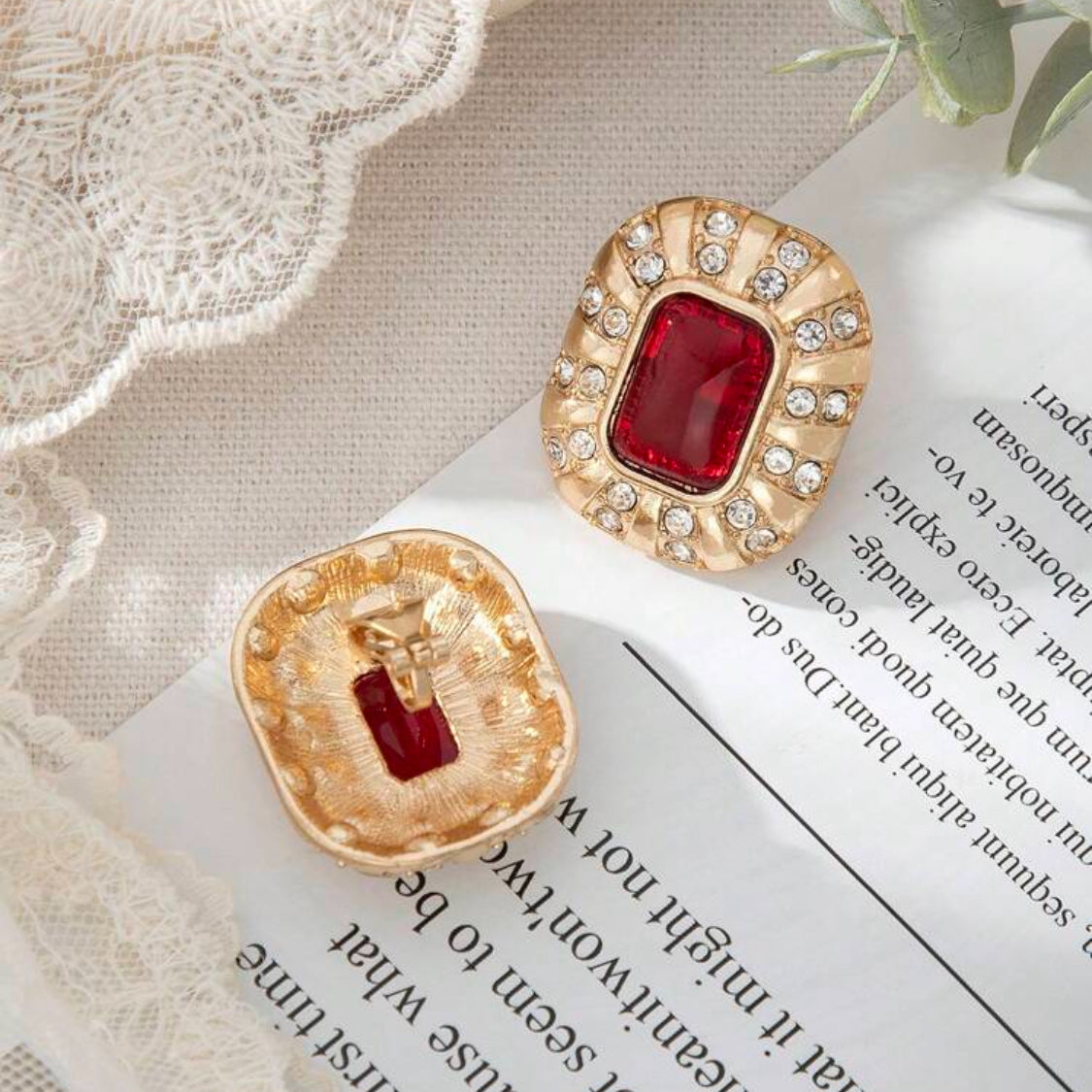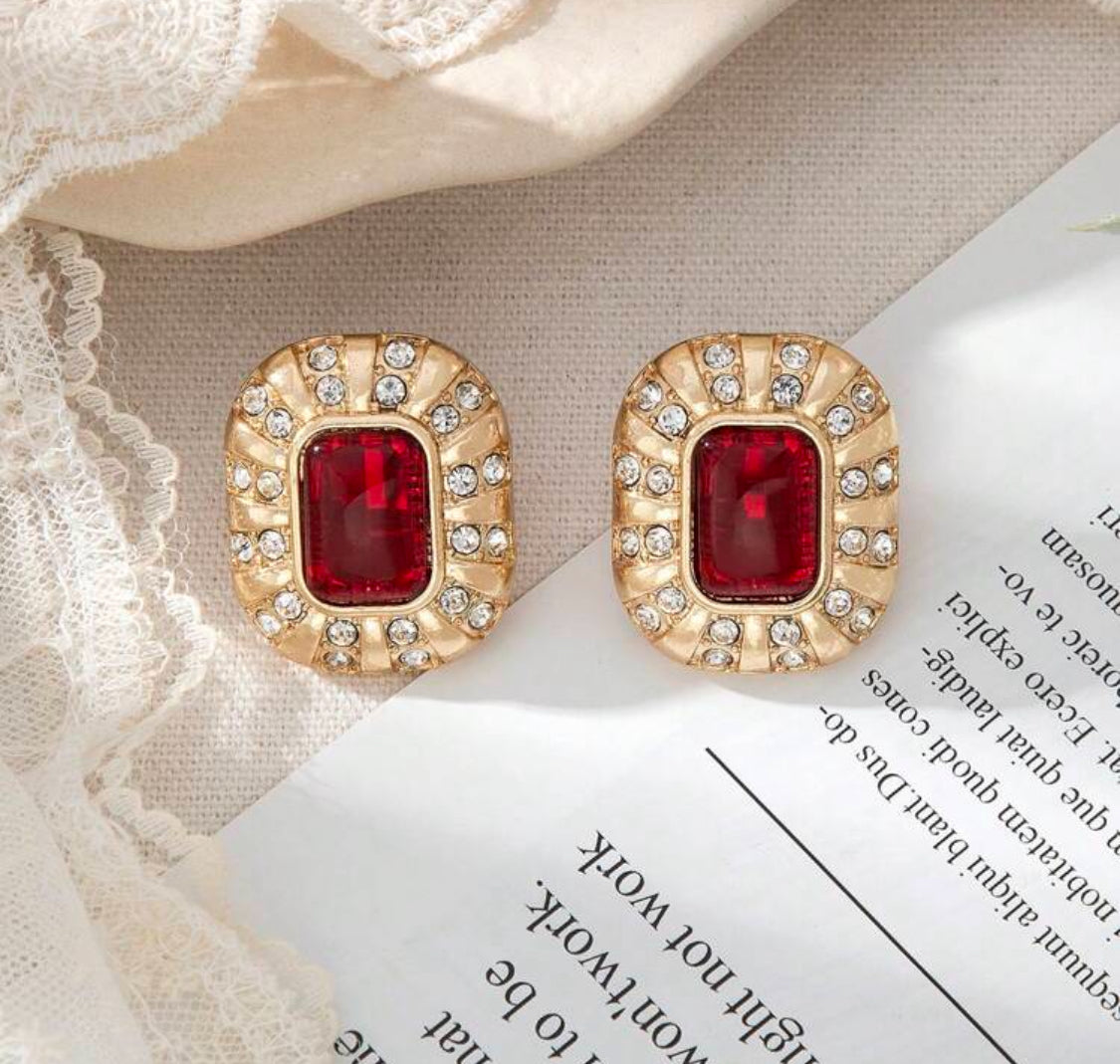 Elevate your style effortlessly with these 1 1/4" clip-on square earrings, featuring a striking gold finish accented by vibrant red and clear stones. Perfect for adding a touch of elegance without the need for pierced ears, they offer both comfort and sophistication for any occasion.