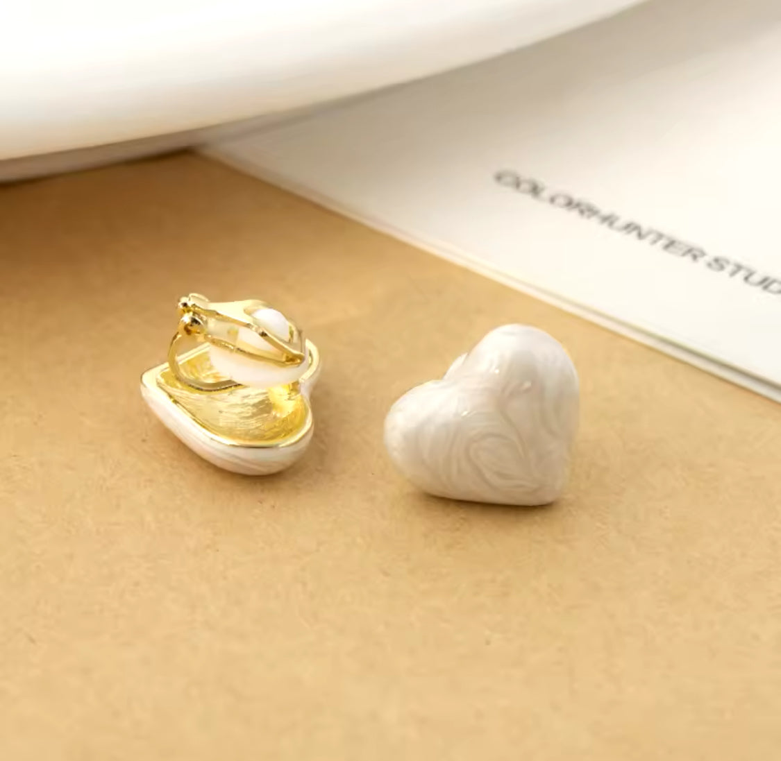 These elegant 1/2" clip-on earrings feature a charming heart design in gold and cream, combining classic style with easy wearability. Perfect for those without pierced ears, they offer a comfortable fit while adding a subtle touch of sophistication to any outfit. Elevate your look effortlessly with these versatile button-style earrings.