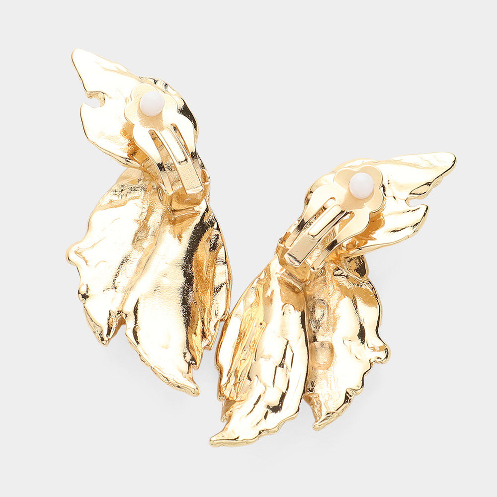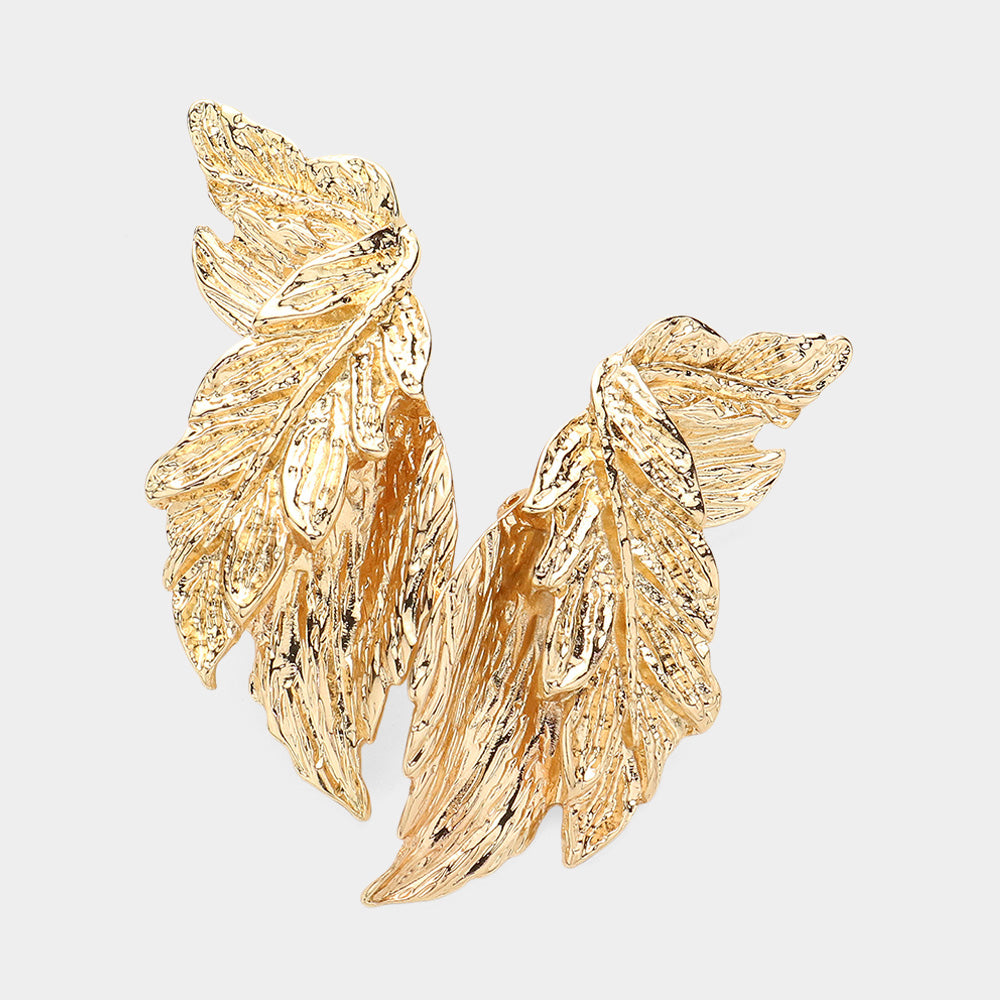 Elevate your style with these elegant 2 1/2" gold folded leaf button-style clip-on earrings. Their lightweight design ensures comfortable wear all day, while the intricate leaf detail adds a touch of natural sophistication. Perfect for those without pierced ears, these earrings offer a chic, versatile accessory that complements any outfit effortlessly.