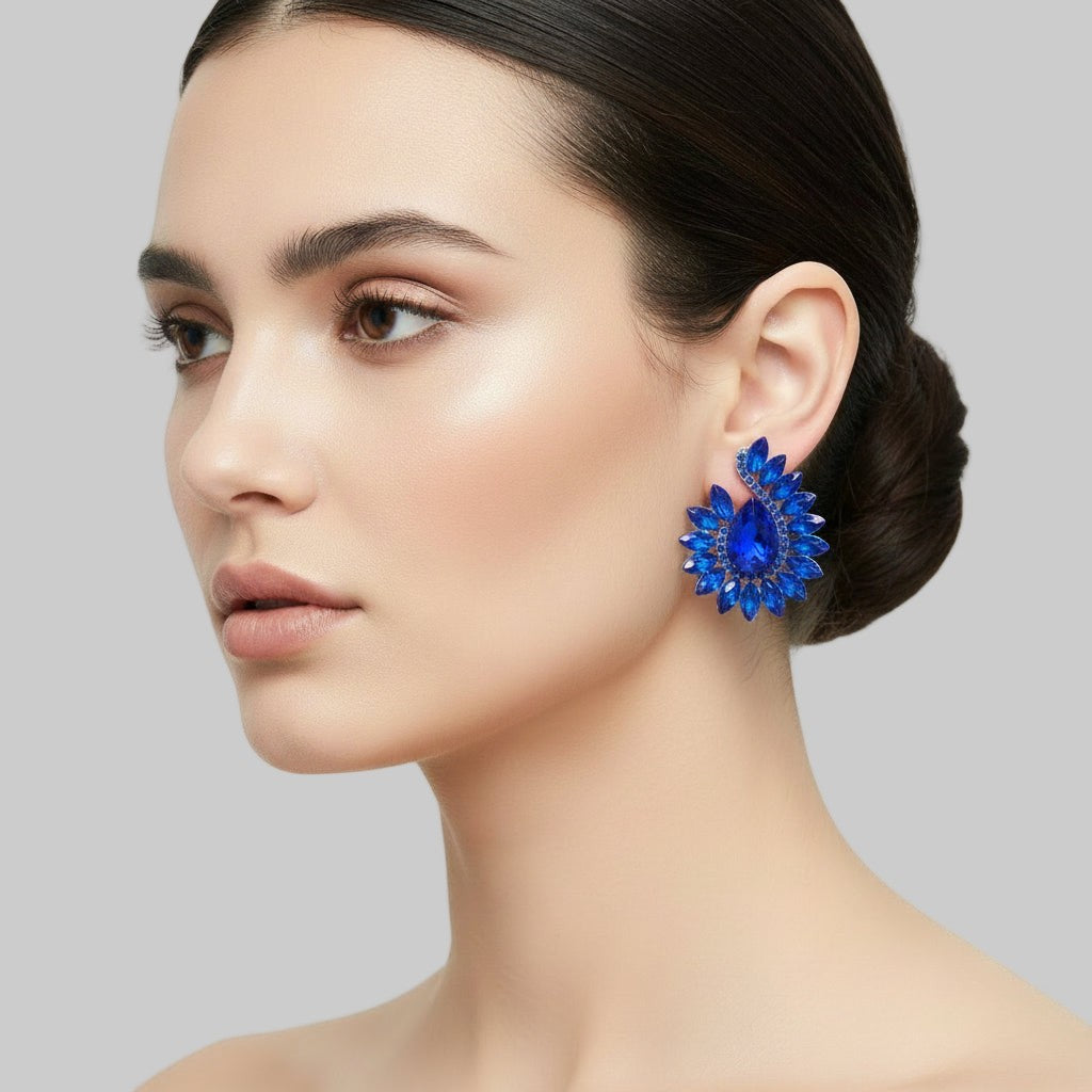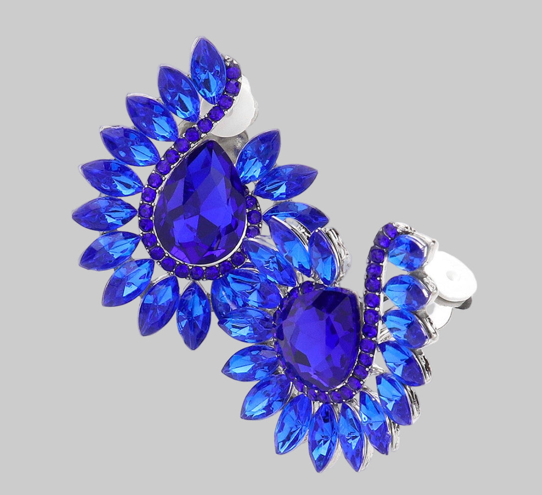 Elevate your accessory game with these striking clip-on earrings featuring a sophisticated silver and blue color palette. The distinctive pointed-edge open button design creates an eye-catching geometric silhouette that commands attention without overwhelming your look. At 1 3/4" long, they offer the perfect balance of presence and wearability for both everyday elegance and special occasions.