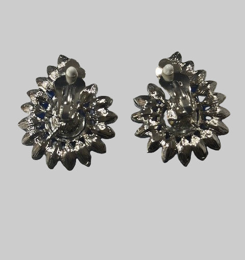 Clip on 1 3/4" silver and blue pointed edge open button style earrings