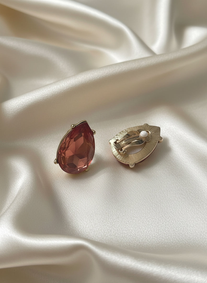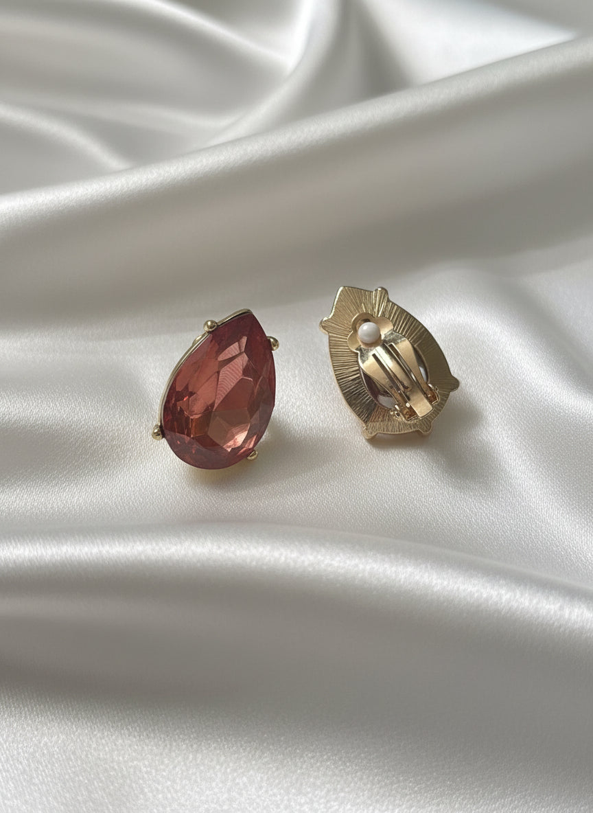 Clip on 1 1/4" large gold and orange teardrop button style earrings