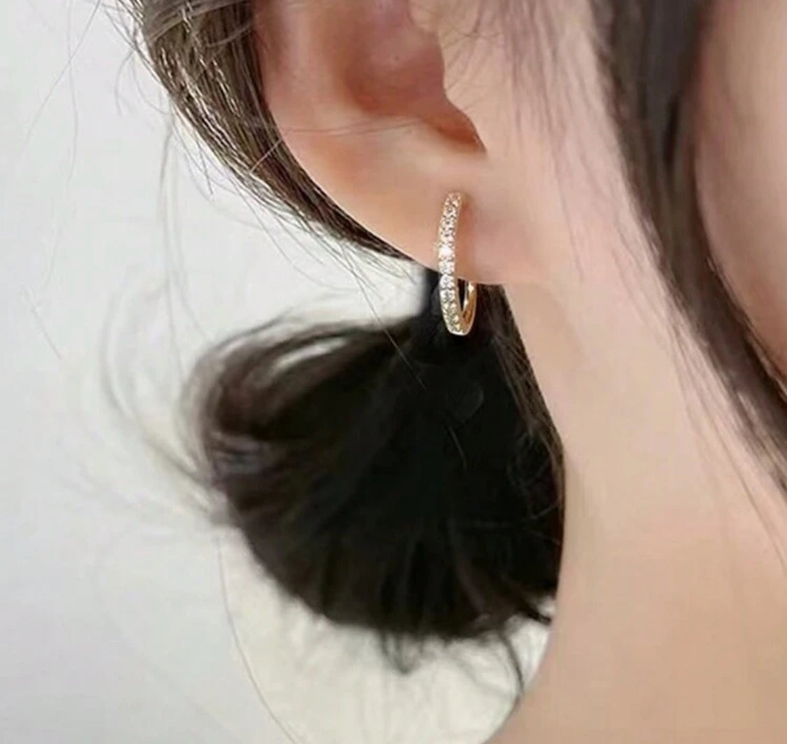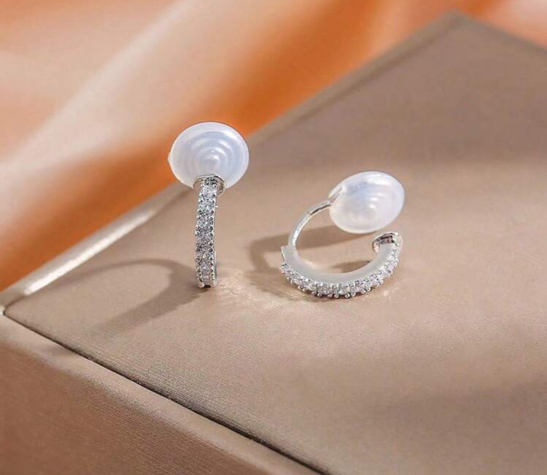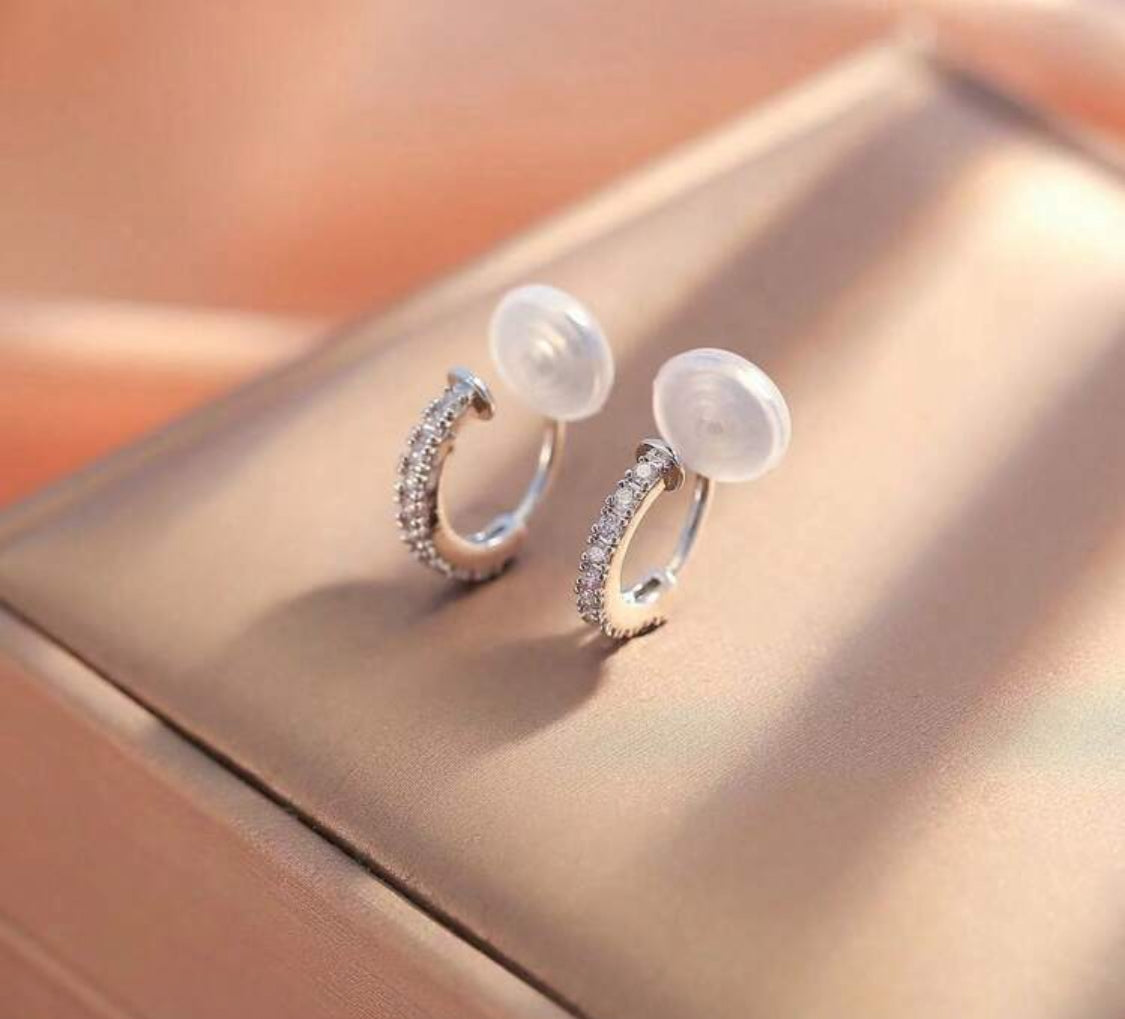 These 1/2" small lightweight silver hoop earrings feature clear stones and a comfort-fit clip-on design, offering an elegant look without the need for pierced ears. Perfect for all-day wear, they combine style and ease, making them a versatile addition to any jewelry collection.