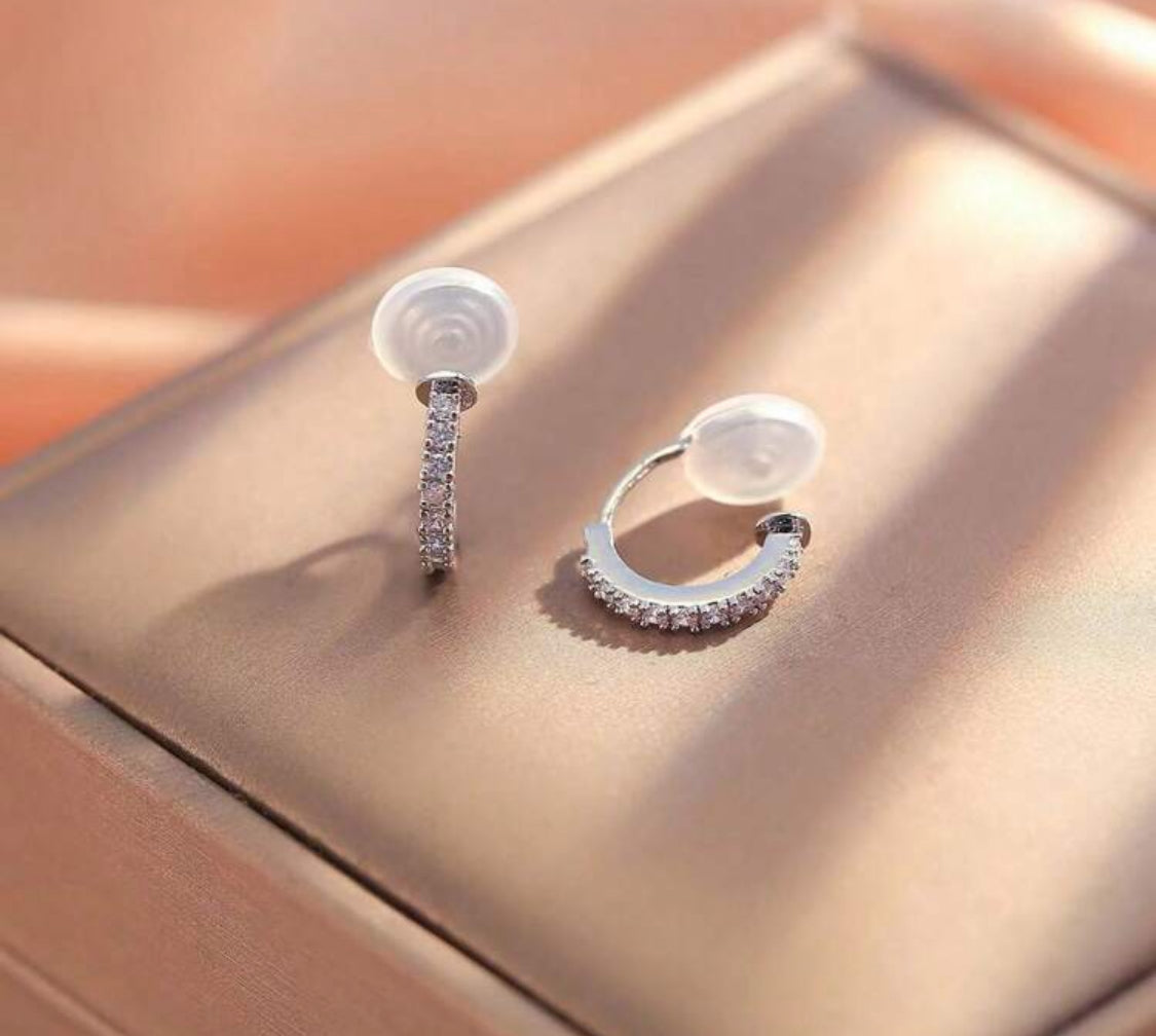 Comfort fit clip on 1/2" small silver and clear stone hoop earrings
