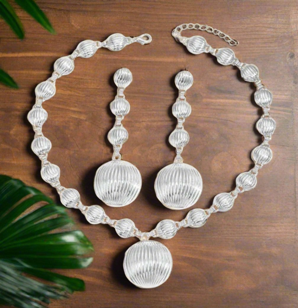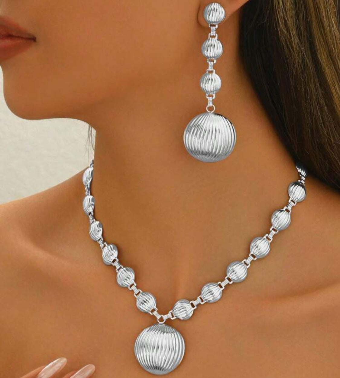 Elevate your style with this trendy silver necklace and earring set featuring indented circle designs. Crafted for pierced ears, this set adds a modern, elegant touch to any outfit. Its sleek silver finish complements both casual and formal looks, making it a versatile addition to your jewelry collection. Perfect for those who appreciate subtle yet distinctive accessories that stand out effortlessly.
