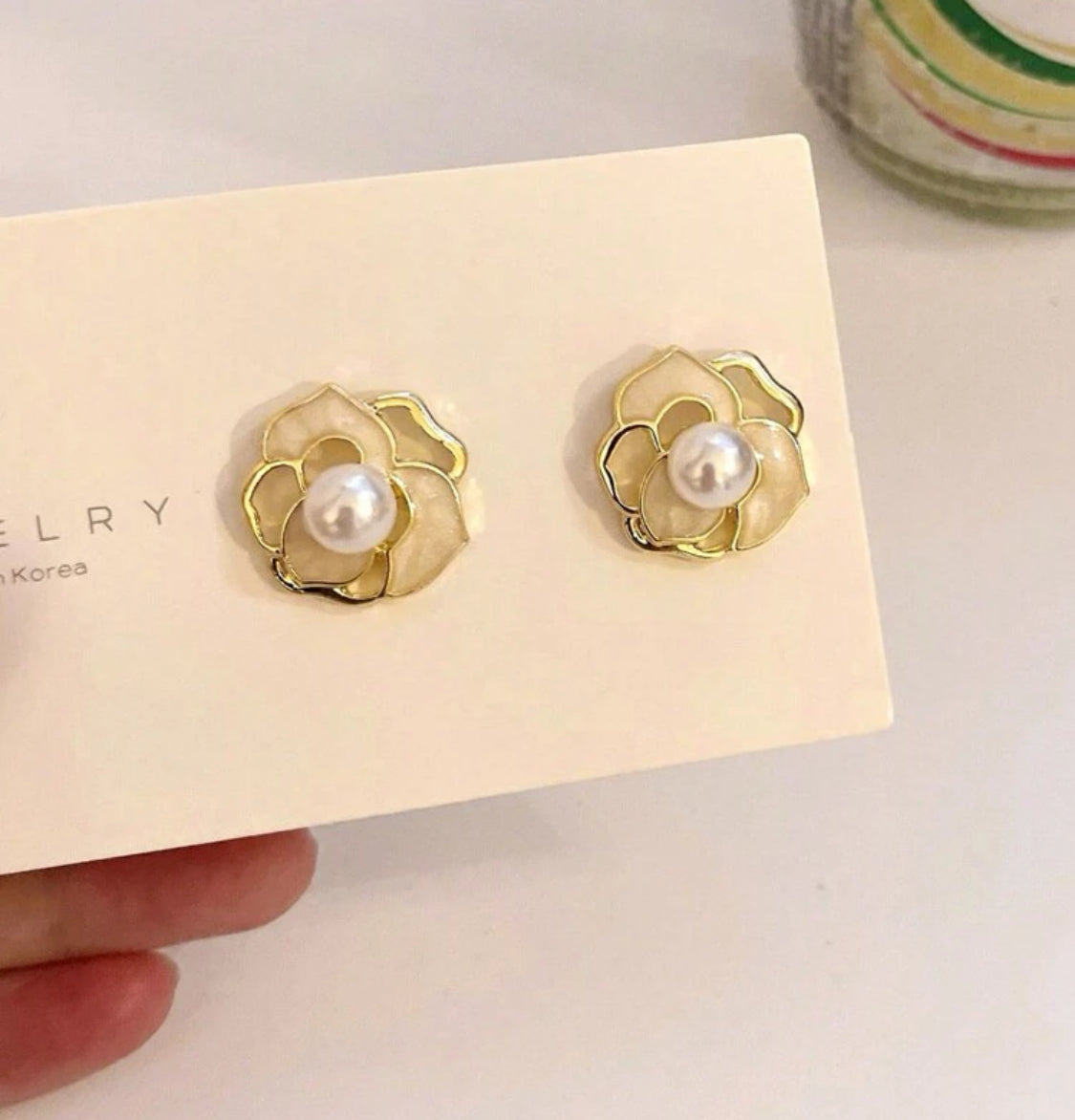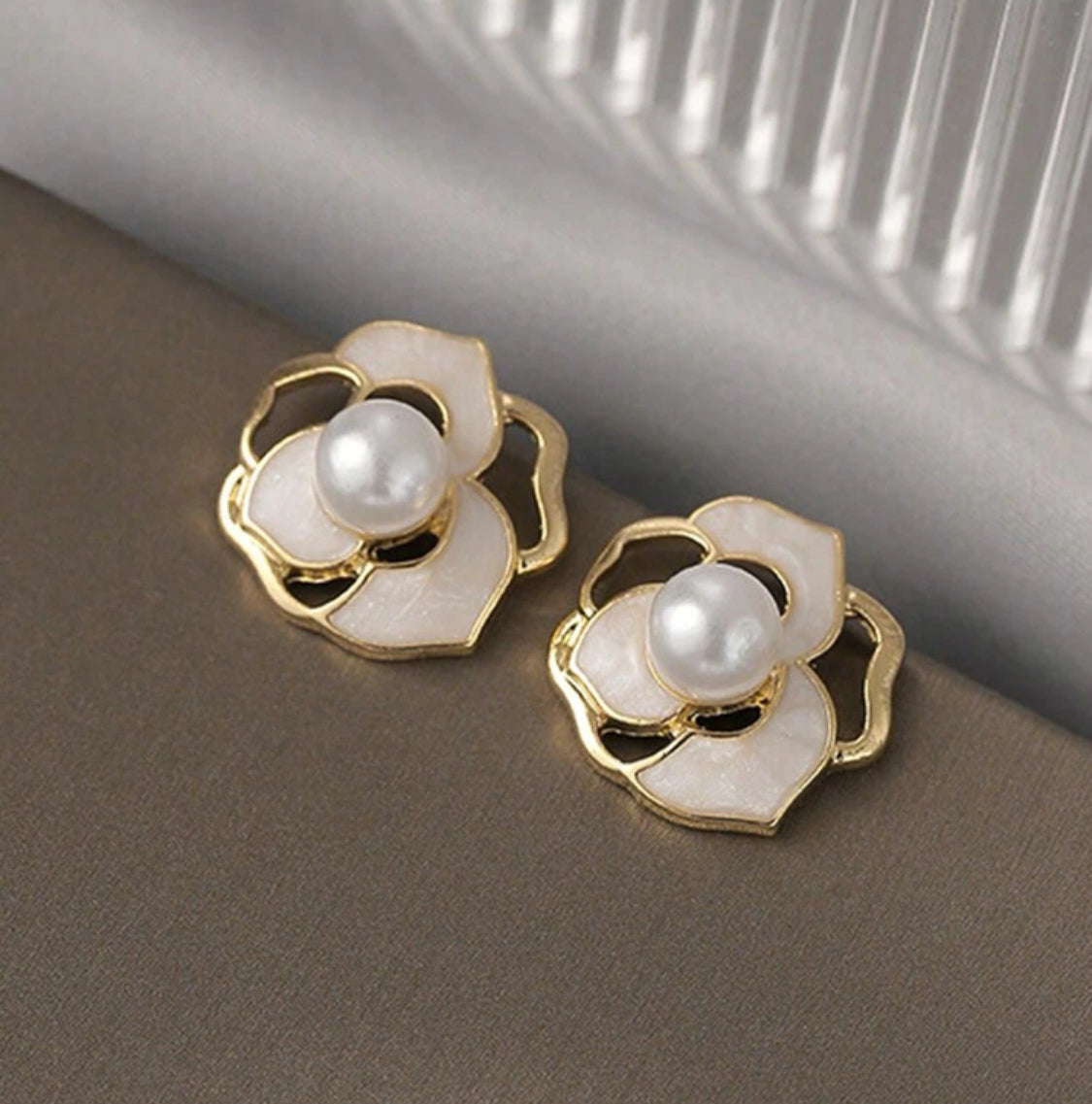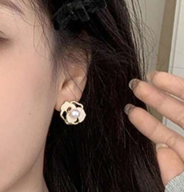 Elevate your look with these elegant 1/2" clip-on earrings featuring a gold and tan flower design centered with a lustrous white pearl. Crafted for comfort, they provide a secure fit without piercing, perfect for adding a touch of timeless beauty to any outfit. Ideal for