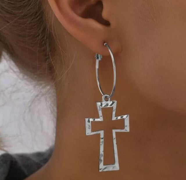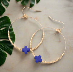 Pierced 1 3/4" silver, black felt, and blue stone dangle hoop earrings Sale! from $11.69 $17.99 Add to Cart