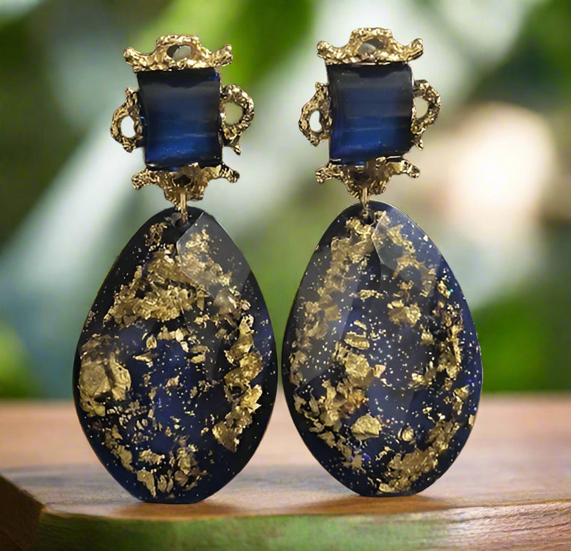 Pierced 3 1/4" silver, blue, gold multi colored pleather teardrop earrings Sale! from $11.04 $16.99 Add to Cart