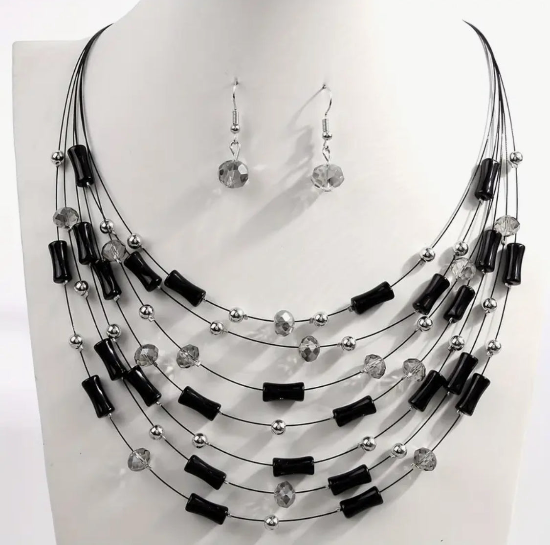 Elevate your style effortlessly with this pierced necklace set featuring sleek silver and black tube-shaped beads strung on a delicate wire. Designed for easy wear without piercings, it offers a modern, versatile look that complements any outfit. Perfect for adding a touch of sophistication and edge to your everyday or special occasion ensemble.
