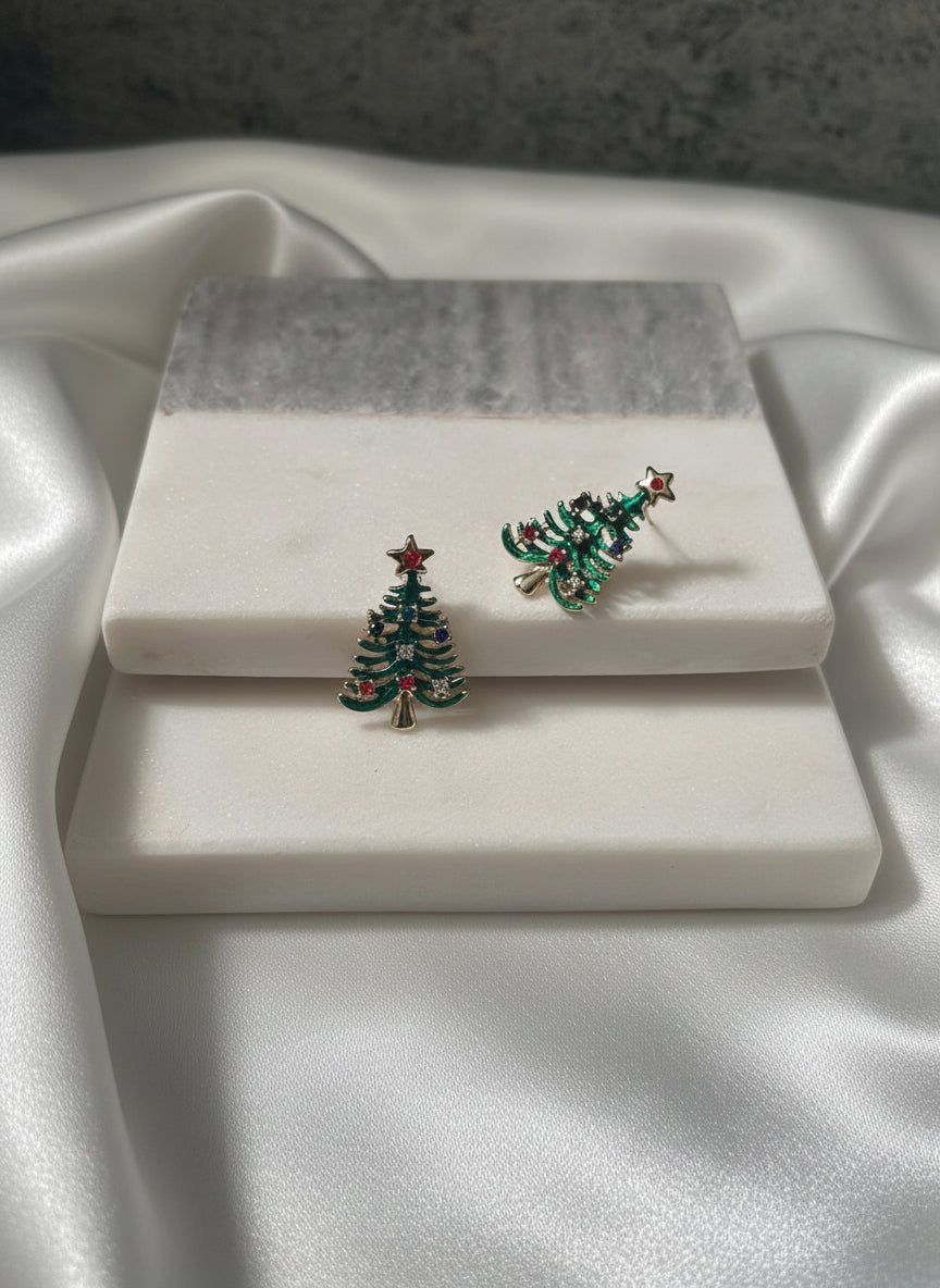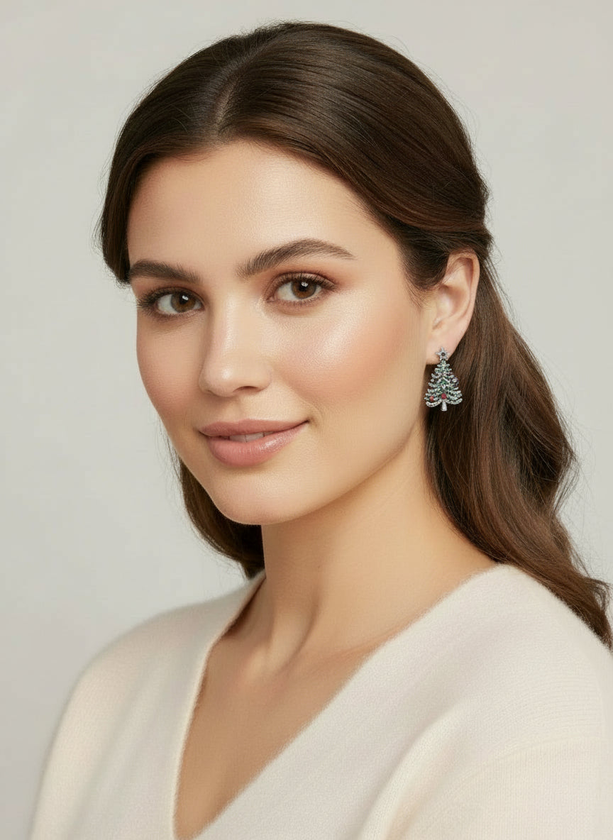 Celebrate the season with these stunning pierced Christmas Tree earrings, featuring a festive design crafted in gleaming gold with vibrant green, red, blue, purple, clear, and multi-colored stone accents. At 1 1/4" long, they offer the perfect balance of eye-catching elegance and comfortable everyday wear. The stone detailing captures the sparkle of holiday lights, making them an ideal choice for festive gatherings, holiday parties, or adding a touch of seasonal cheer to your winter wardrobe.